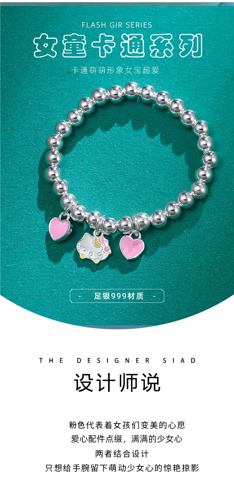Браслет из стерлингового серебра с героями мультфильмов для девочек, детские украшения, детский браслет из чистого серебра 999 пробы, серебряные украшения для девочек, подарок на день рождения