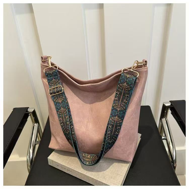 2024 новая мода с широким плечевым ремнем, повседневная простая сумка-ведро для поездок на работу, большая вместительная сумка через плечо на одно плечо, маленькая квадратная сумка