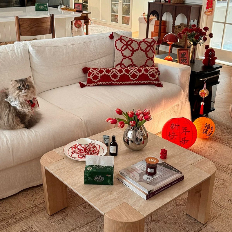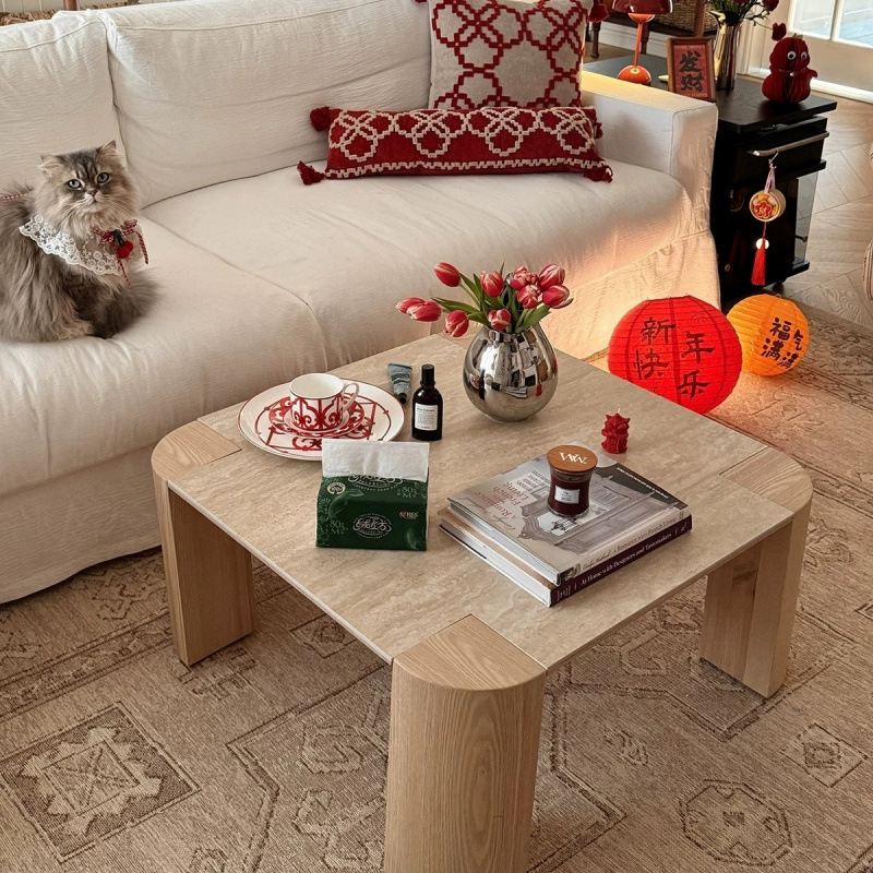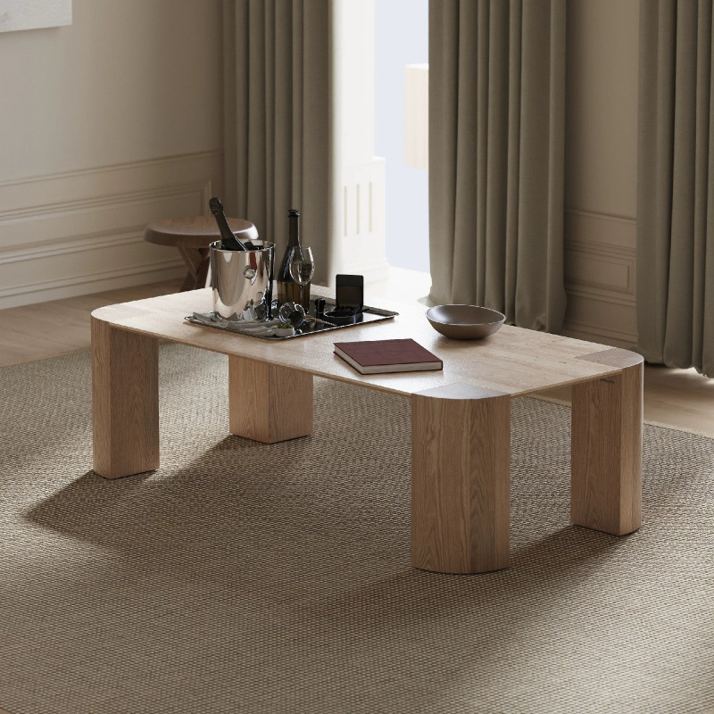 Журнальный столик в современном стиле кремового цвета из травертина, для маленькой квартиры, гостиной, дома, из сланца и массива дерева, столик для чая, B&B