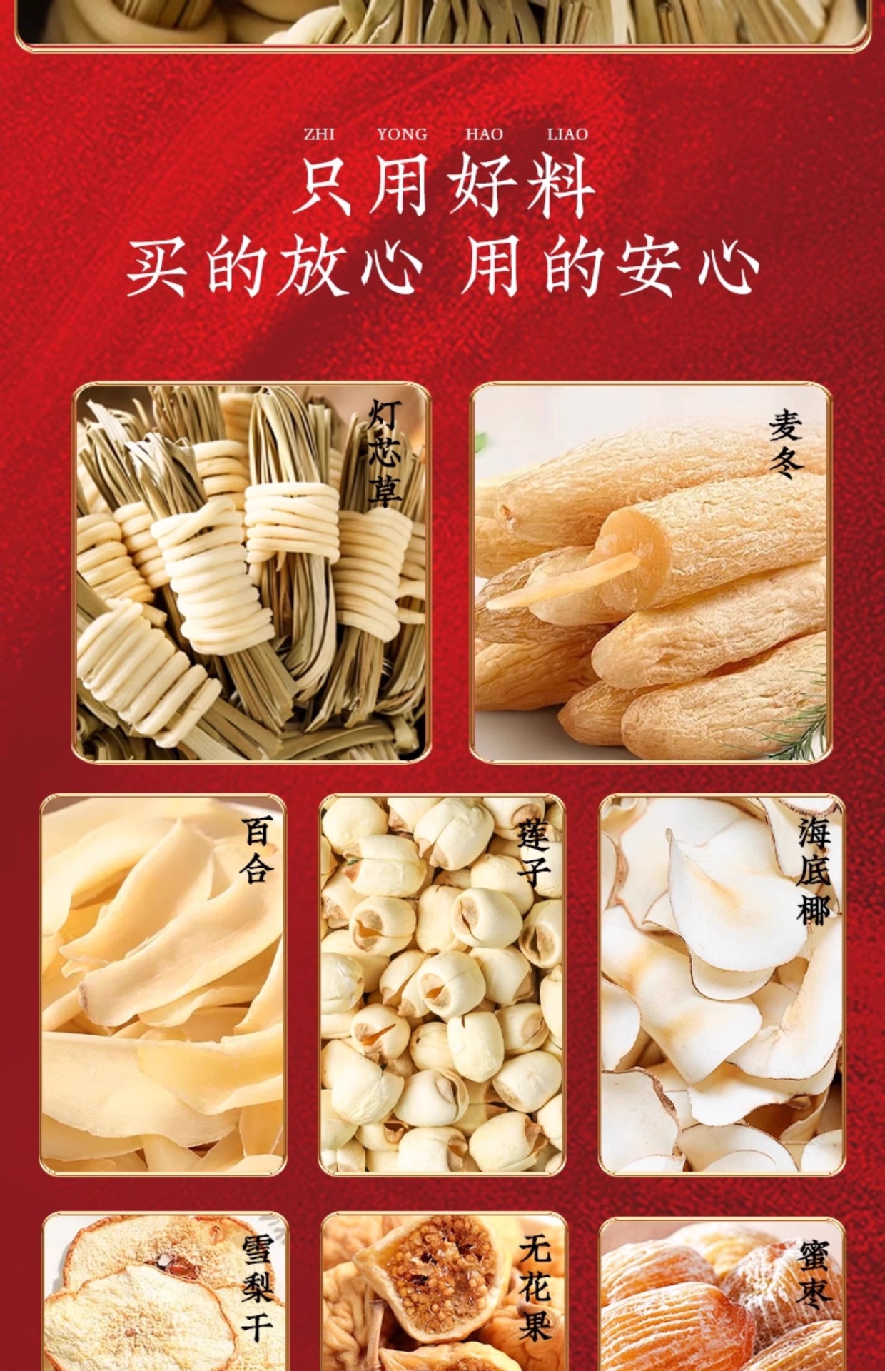 Суп Lampwick Qingxin для детей и младенцев, приготовленный с горячей снежной грушей, морским кокосом, оphiopogon japonicus, набор ингредиентов традиционной китайской медицины для снижения жара и устранения избыточности.
