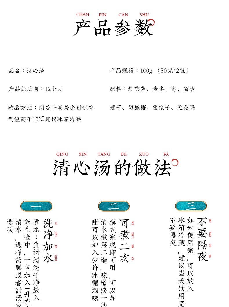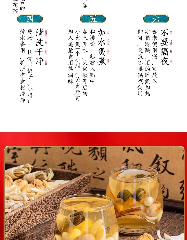 [Отвар Линсиньсинь 50 г*2 упаковки] У ребенка нет гнева/женская одежда более непринужденная; Суп Tremella и семян лотоса [60 г х 2 упаковки] насыщенный коллагеном; [Чай с коричневым сахаром и имбирем и финиками, 30 г*3 пакетика] Боюсь холода/Холод тела/«Паласу» нужно тепло; [Красный рис «Пять красных супов» 120 г*2 упаковки] Полный блюдо Ци; [Олд Пекинский суп Сяодяоли 60 г*2 упаковки] Увлажняет сухость и тушит пожар на потолке; [Аутентичный суп с кислой сливой Гунъянь, 100 г*2 упаковки] Летний лед «Кока-кола».; [Вода для подковы Maogen из бамбуковой трости, 100 г * 2 упаковки] Незаменимая вещь для барбекю-горшков, чтобы избавиться от огня; [Улучшенный суп из корня лотоса и корня очерета, 60 г*2 упаковки] Попрощайтесь с насморком