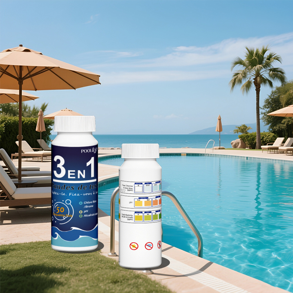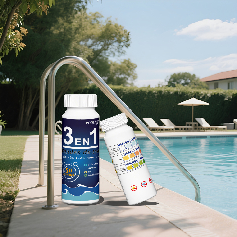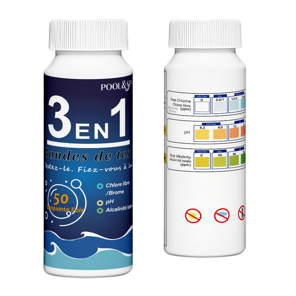 Тестовая бумага для анализа качества воды в спа-бассейне, трехв合一, мульти-тестовая бумага, французская версия