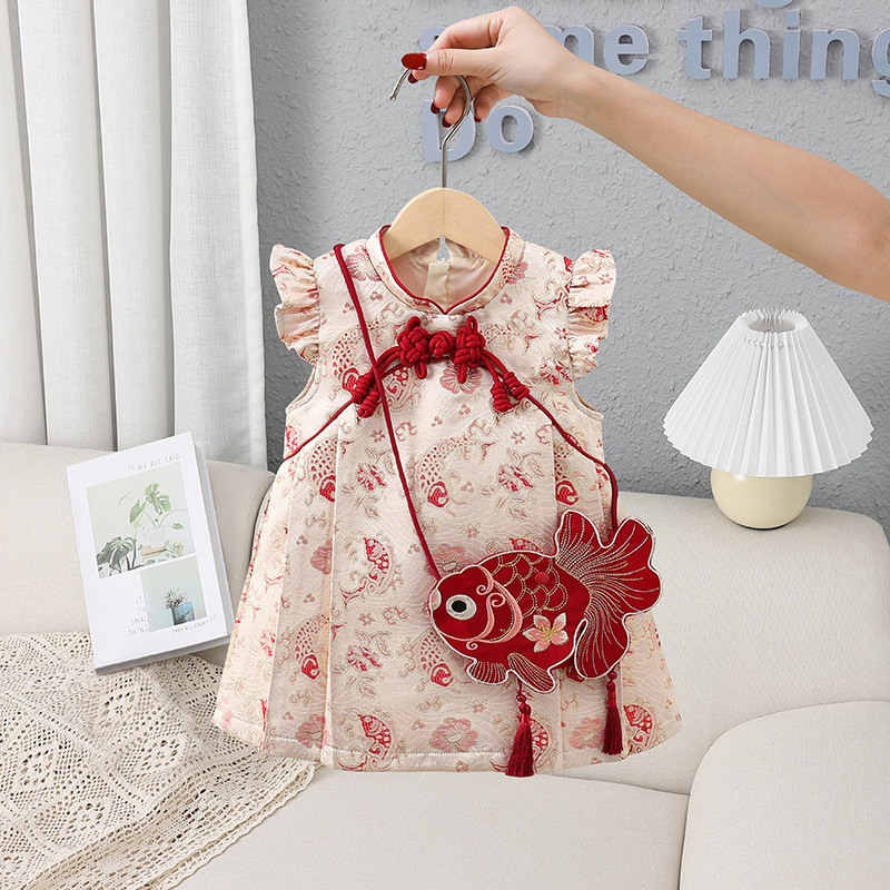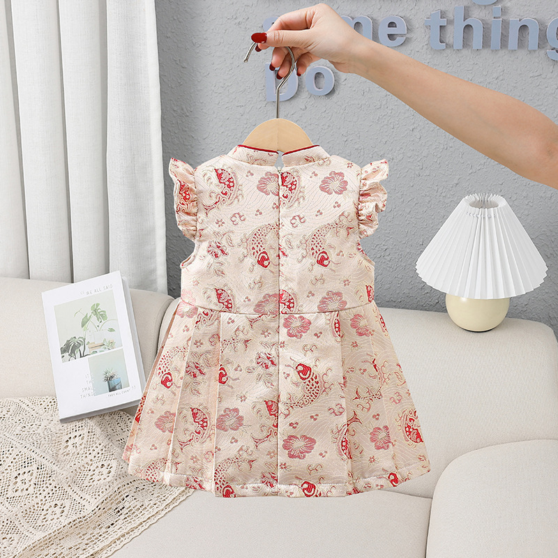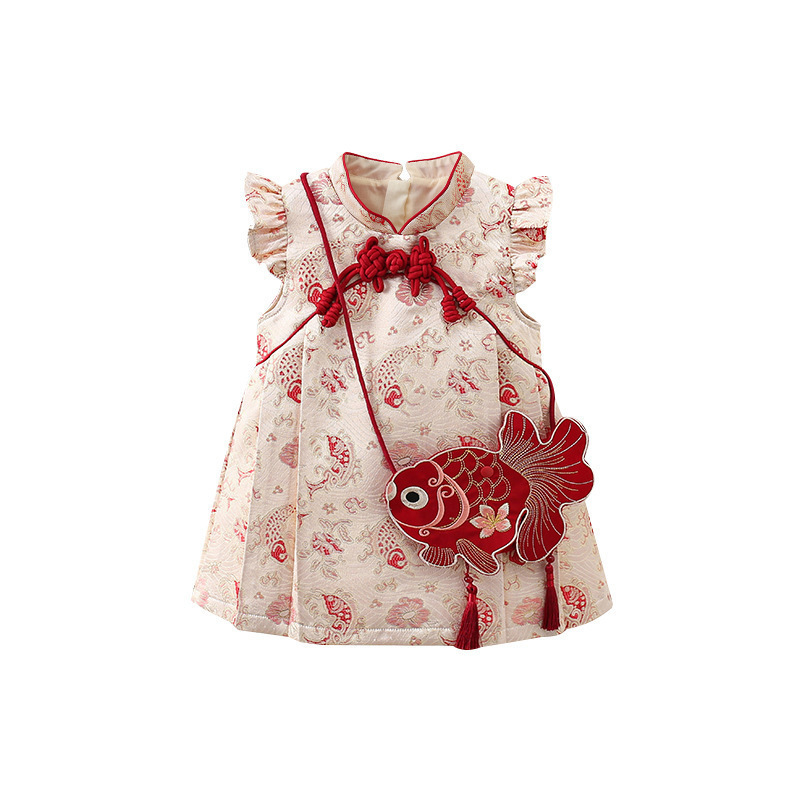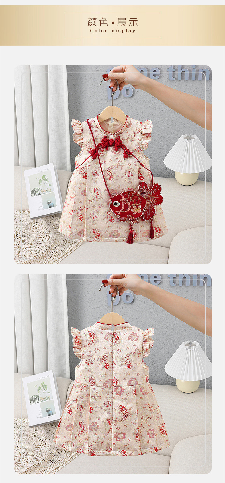 Новое весеннее платье для девочек 2025 года с принтом рыбок, детское платье с коротким рукавом для дня рождения, праздничное платье