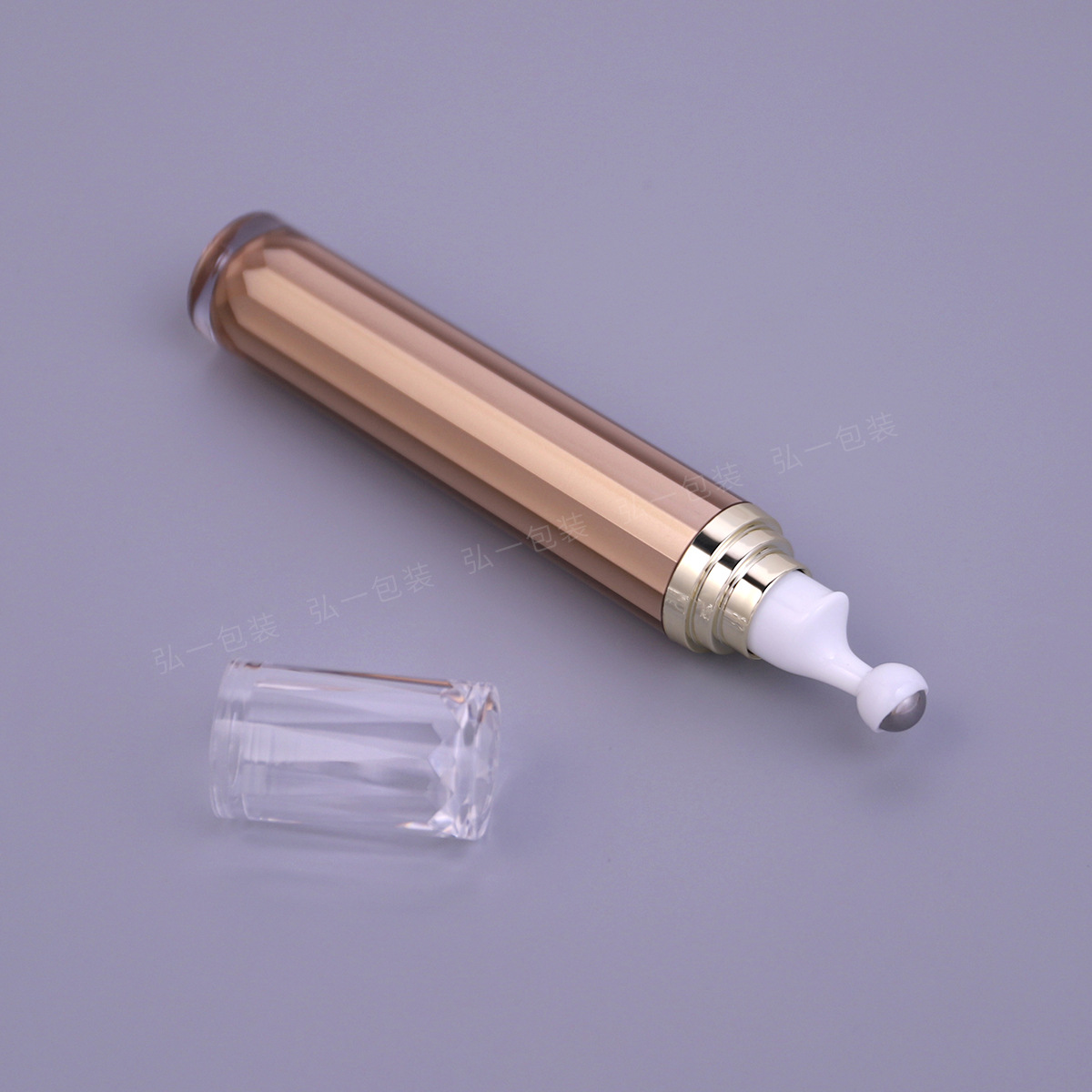 Заводская прямая продажа золотых акриловых флаконов для крема для глаз с роликовым аппликатором 10 мл/15 мл, вакуумный флакон для эссенции для глаз с дозатором