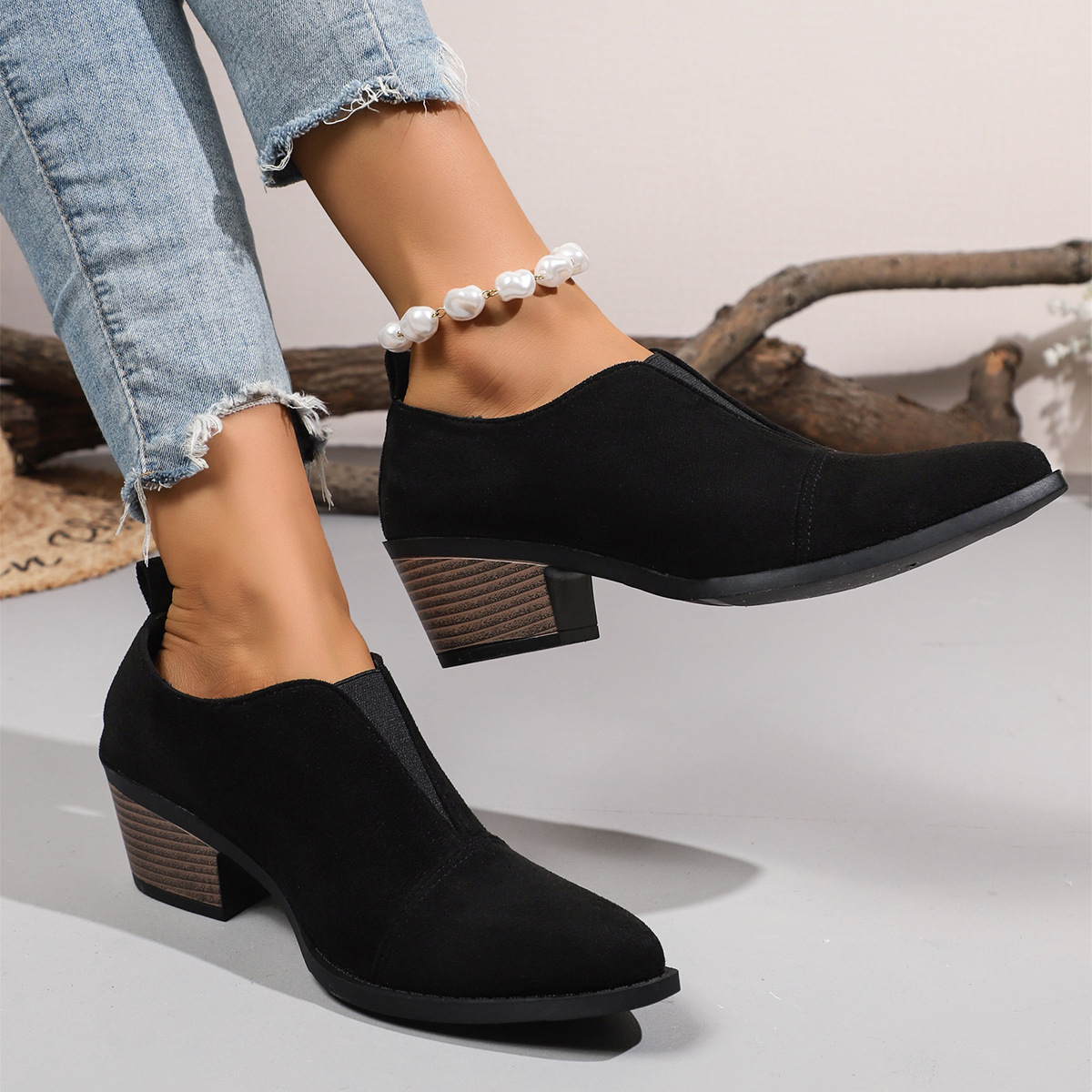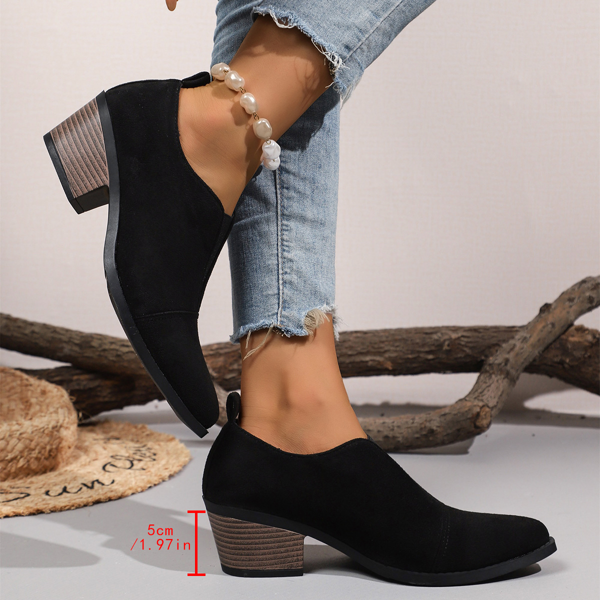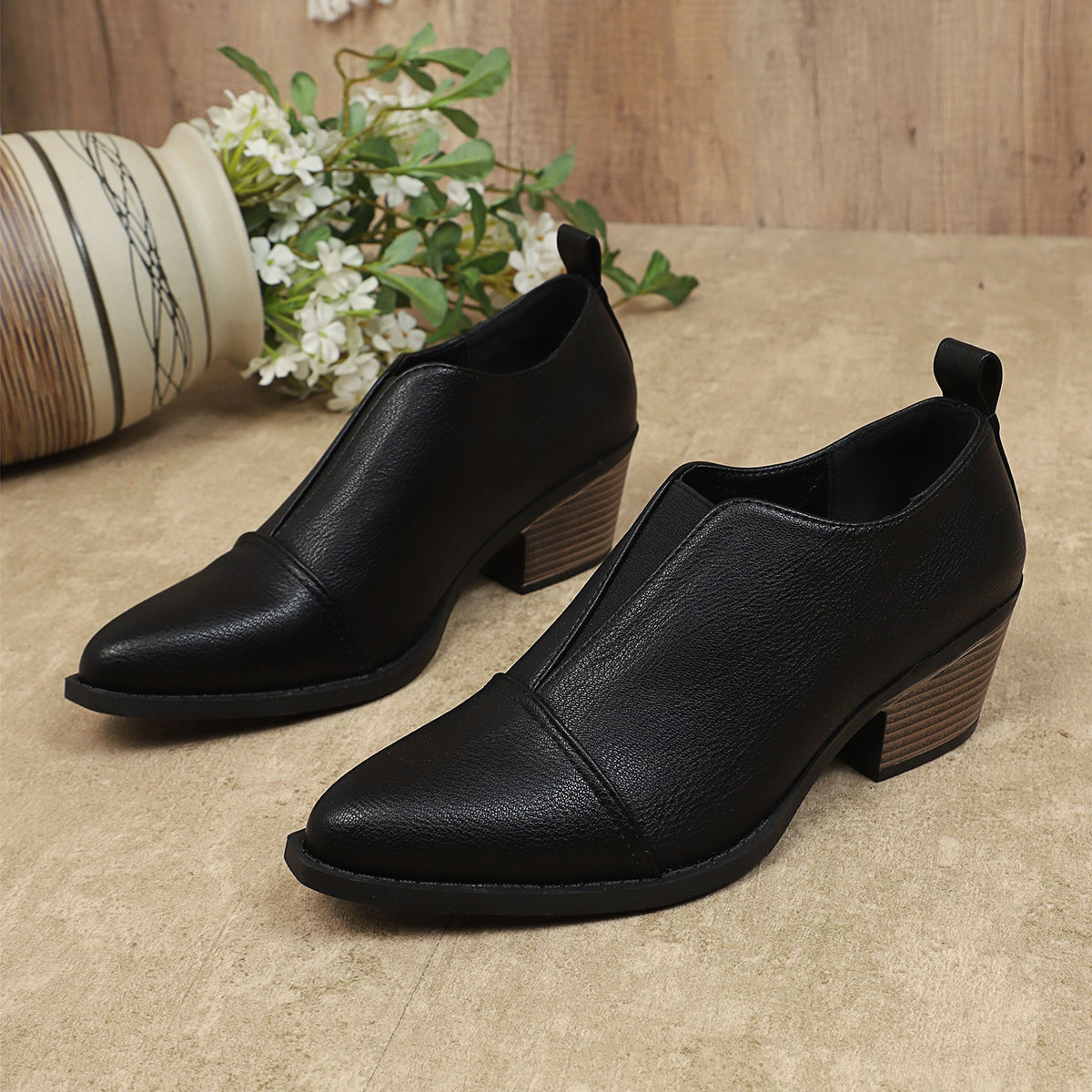 Женские кожаные туфли челси, британский стиль, заостренный носок, толстый каблук, большие размеры, эластичные, кросс-бордер, западный стиль, новинка 2025 года