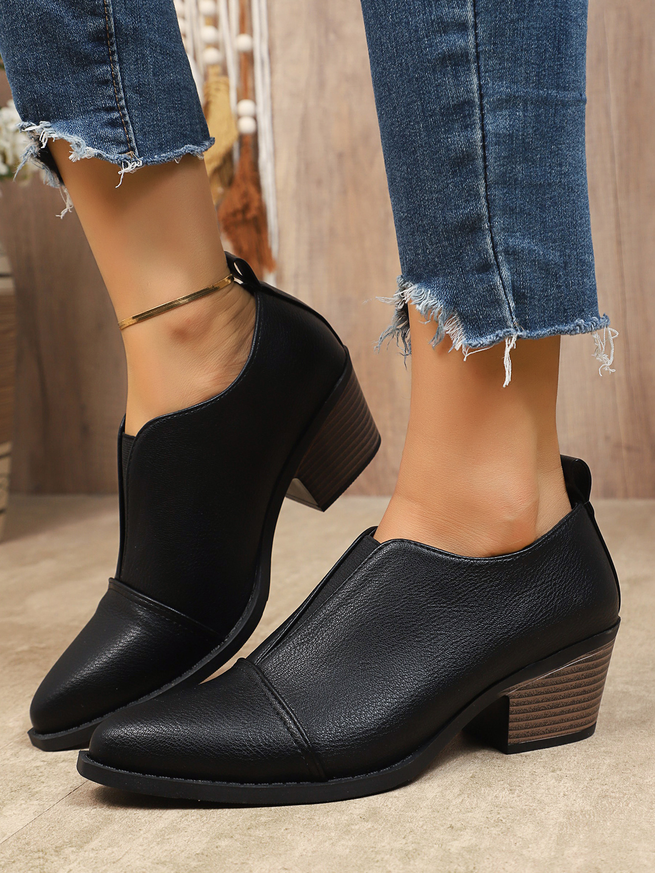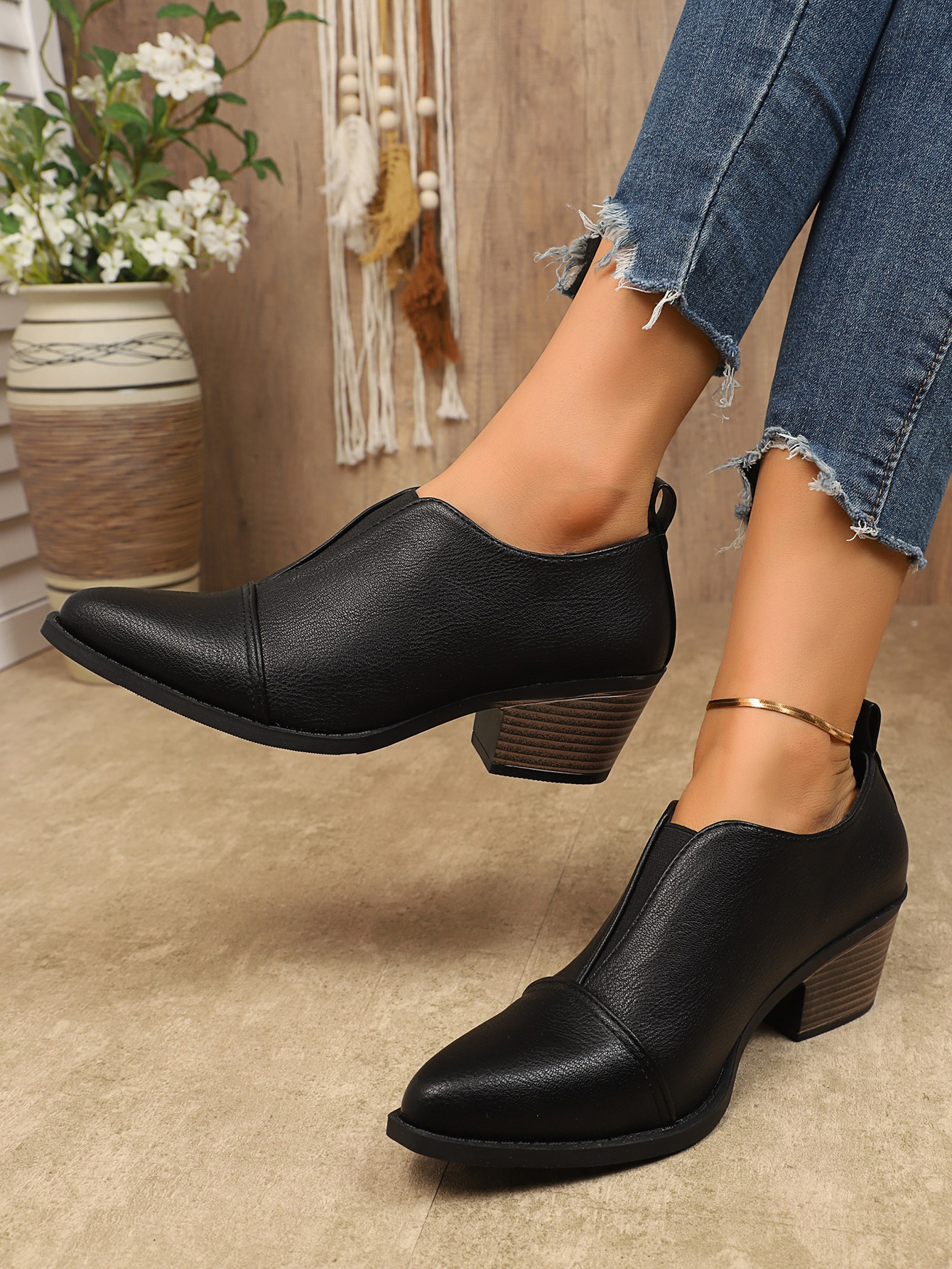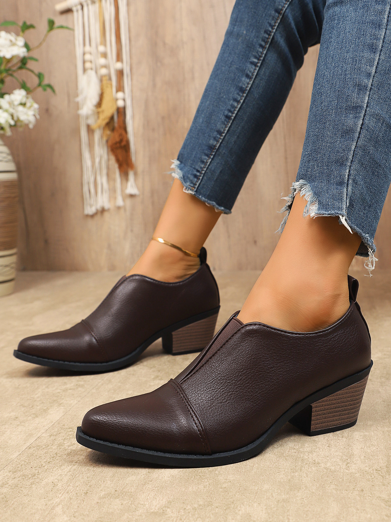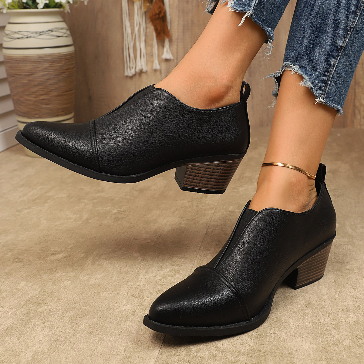 Женские кожаные туфли челси, британский стиль, заостренный носок, толстый каблук, большие размеры, эластичные, кросс-бордер, западный стиль, новинка 2025 года