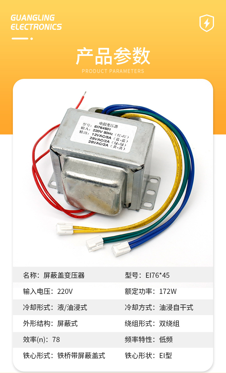 Индивидуальный настраиваемый по требованию низкочастотный трансформатор EI76*45 малой мощности 172 Вт с экранированным корпусом, завод по производству силовых трансформаторов
