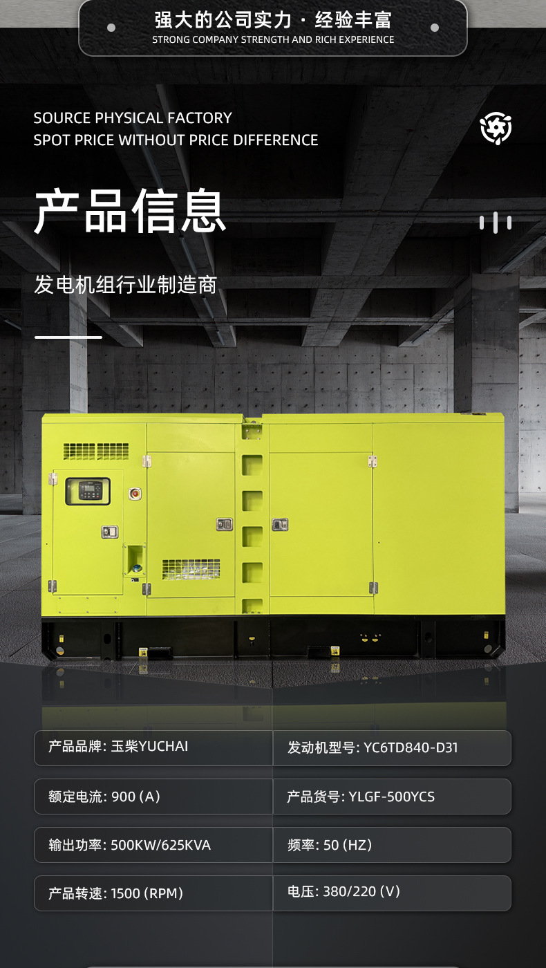 Дизель-генераторная установка Yuchai 500 кВт, водонепроницаемая, бесшумная, трехфазная 380В, прямые поставки с завода