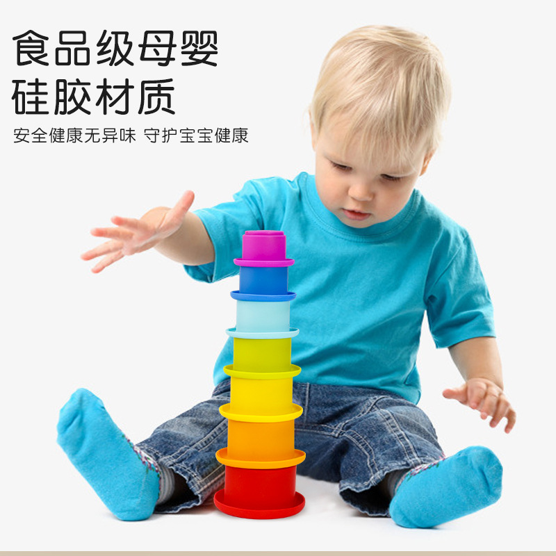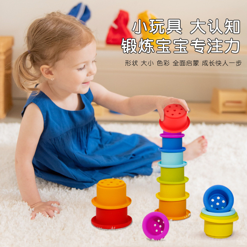 Детские развивающие игрушки из пищевого силикона, интерактивные штабелируемые стаканчики, научные и образовательные игрушки