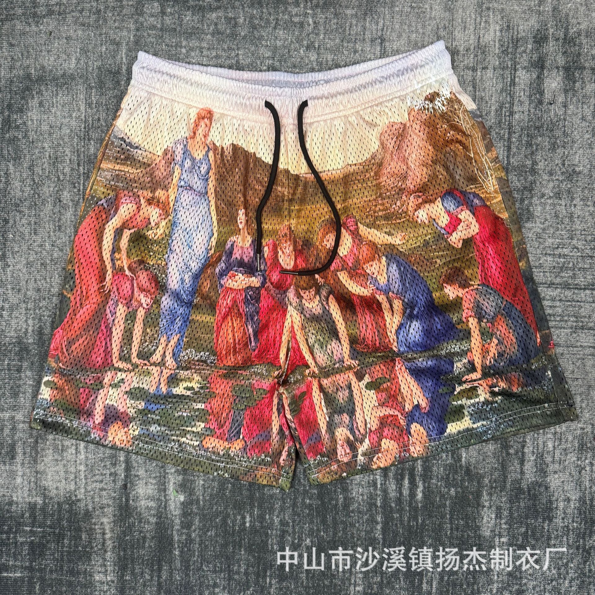 Мужские быстросохнущие шорты для бега и баскетбола в американском стиле, модные брендовые, с цифровым принтом, свободные сетчатые спортивные шорты для бега и баскетбола от внешнеторговой фабрики.