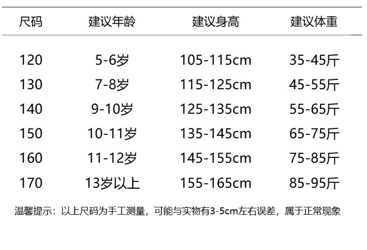 120cm; 130cm; 140cm; 150cm; 160cm; 170cm