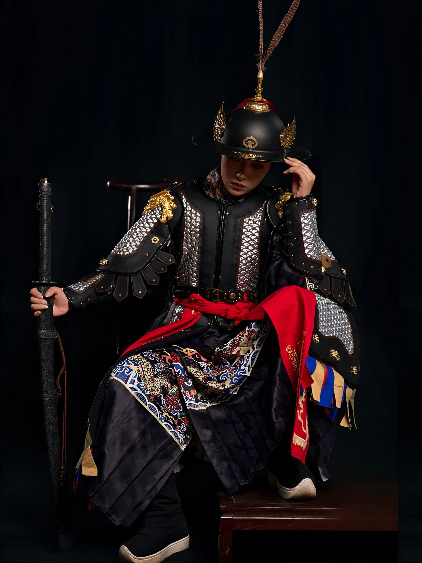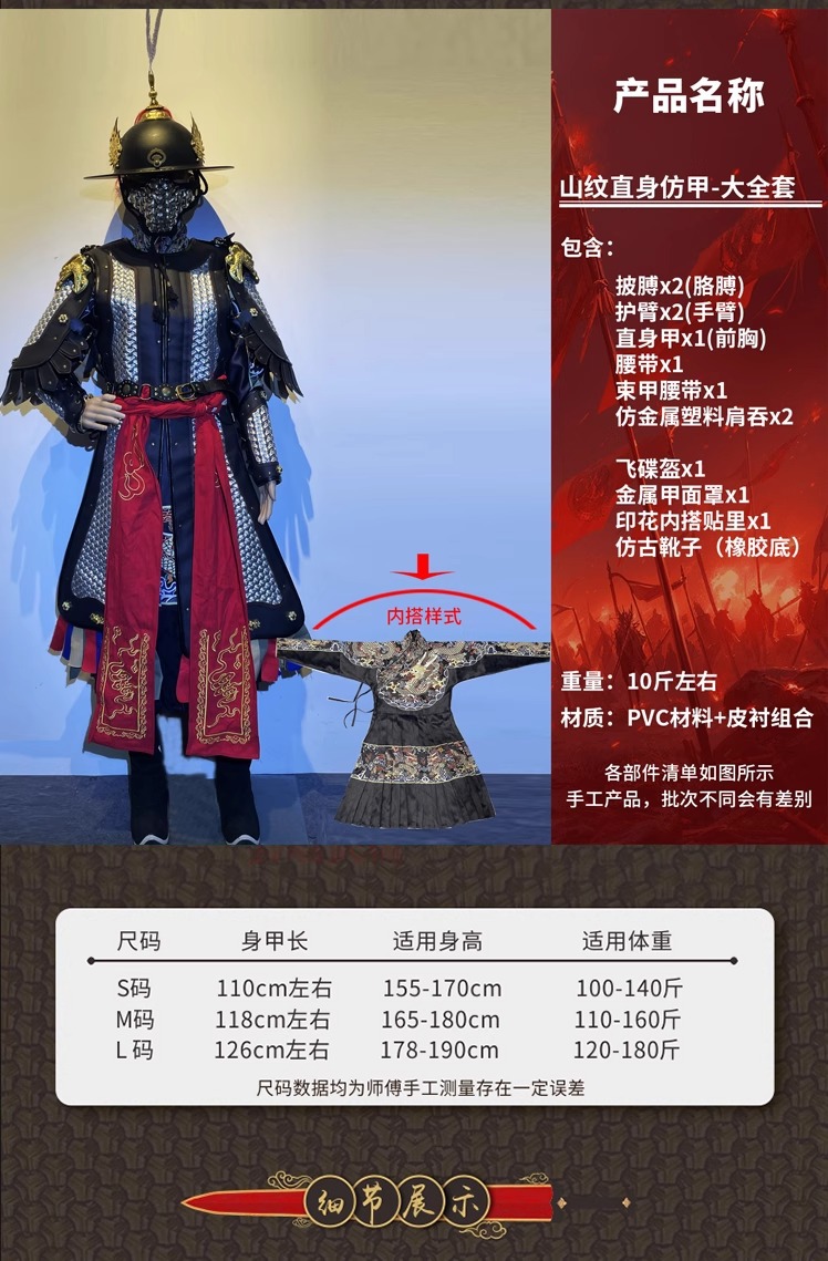 Аутентичная горная модель, прямая доспехи, имитация доспехов, национальный тренд, носимая доспехи для косплея, доспехи в жестком стиле для взрослых Hanfu