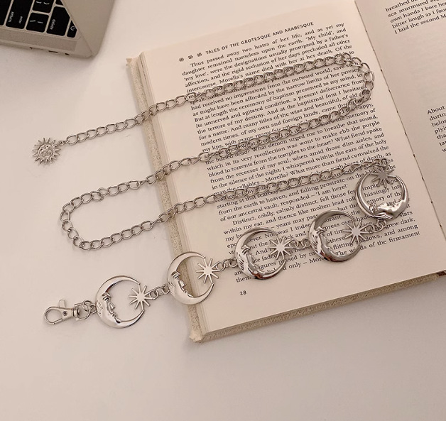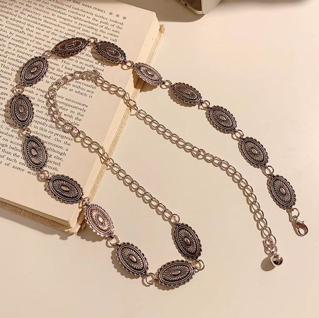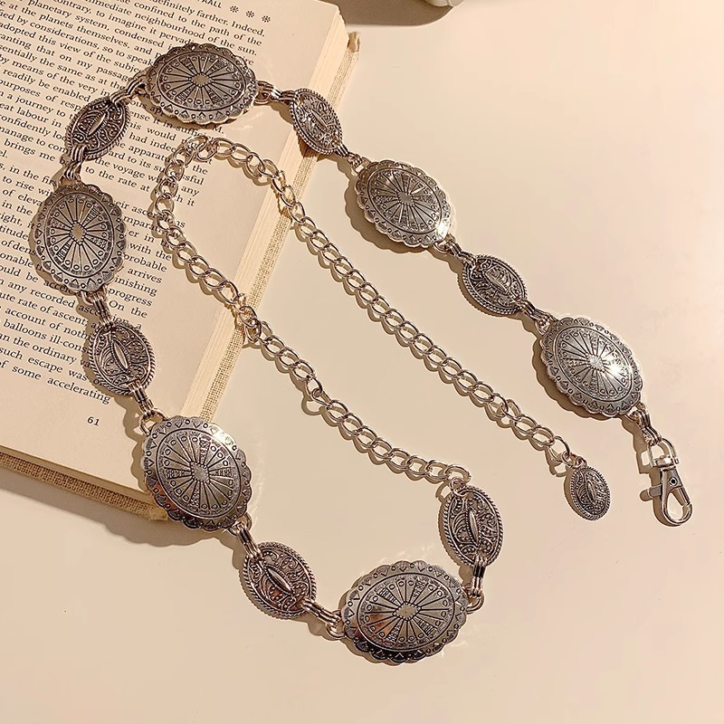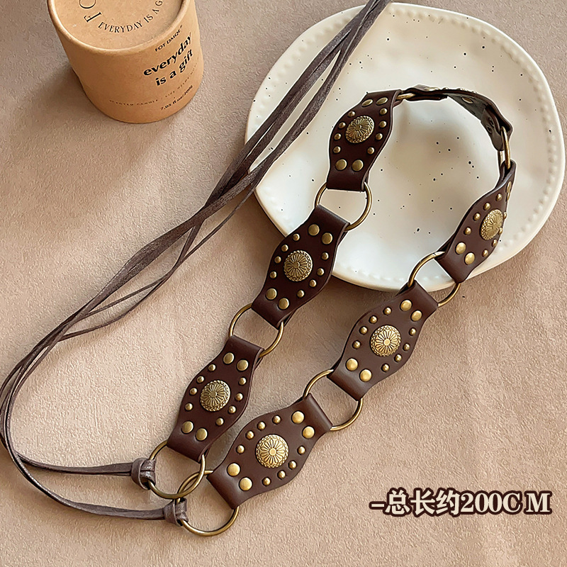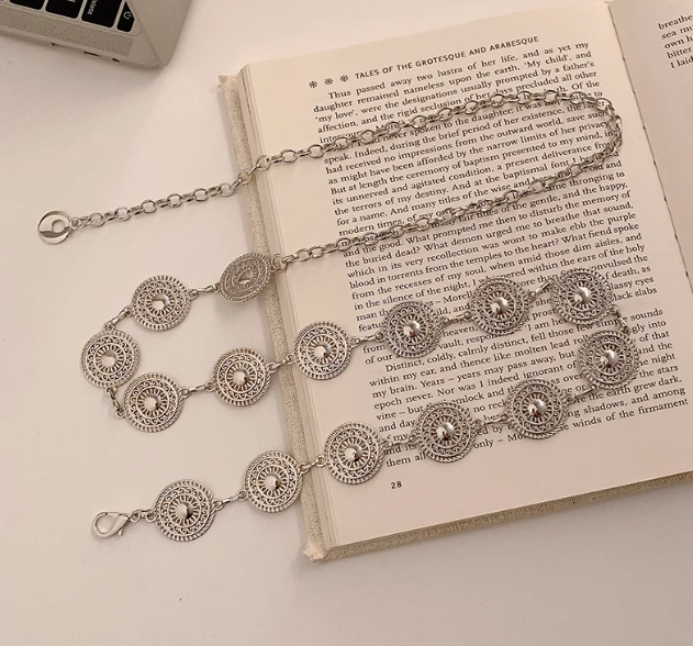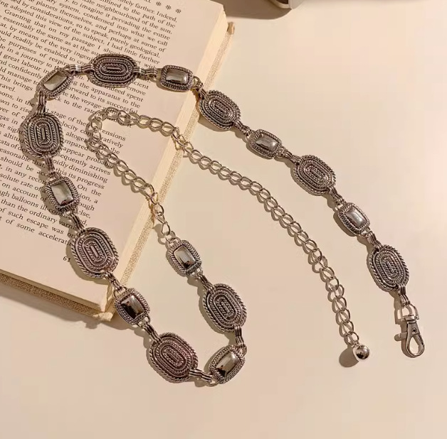 Коричневая плетеная веревка на талии с синим ромбом и бабочкой - около 181 см, бусины разных цветов.; Синий ромбовидный цветок, коричневая плетеная веревка на талии - около 181 см, случайный цвет бусины; Бежевая плетеная веревка на талии из белой скорлупы кокосового ореха - около 181 см, случайные цвета бусин.; Коричневая плетеная веревка из скорлупы кокосового ореха - около 181 см, бусины разных цветов.; Яркая цветочная веревка на талии с синей ракушкой - около 138 см.; Цепочка на талию с разноцветным цветком и розовой ракушкой - около 138 см.; Цепочка на талию с подвеской в виде морской звезды из бисера - около 130 см.; Коричневая кожаная веревка на талии с подсолнухом-203 см; Коричневый замшевый поясной шнур с пряжкой и 11 цветами в виде гирлянды; Коричневая ракушка, коричневый камень, цветок, поясная веревка-178 см; Коричневая ракушка, коричневый камень, цветок, поясная веревка-178 см; Синяя веревка из натурального камня и деревянных бусин-164 см; Талия из коричневого натурального камня и деревянных бусин - 164 см; Коричневая деревянная бусина с кисточкой, плетеная веревка на талии-136 см; Бежевое деревянное квадратное кольцо, плетеная веревка на талии-113,5 см; Бежевое плетеное веревочное кольцо с бисером на талии-146 см; Серебряная металлическая цепочка на талию с крупными и мелкими бабочками - 114 см; Металлическая овальная цепочка на талию длиной около 120 см.; Цепочка на талию 5-Luna Sun — около 121 см.; 9 белых бабочек и 10 серебряных цепочек с кристаллами для талии — около 114 см; Металлическая цепочка на талию с крупными и мелкими дисками — около 120 см.; Металлический диск 8 квадратов 8 поясная цепочка - около 114см; Металлическая поясная цепочка с серебряным сердцем 11 - около 111 см.; 15 серебряных цепочек с бабочками для талии – около 109 см; Серебряная овальная цепочка на талию с бриллиантами и жемчугом-116см; Серебряная поясная цепочка с пятиконечной звездой, 56 см; 3 большие и 4 маленькие бабочки, серебряная цепочка на талию — около 119 см; Цепочка на талию с 15 серебряными дисками - около 117 см; Золотая металлическая цепочка на талию с крупными и мелкими кольцами - 110 см; Черно-белый шелковый шарф с ромашками и бисером на талии; Шелковый шарф с коричнево-зеленым узором и цепочка на талию с бусинами; Коричневый богемный шелковый шарф с бисерной цепочкой на талию; Светло-коричневый бохо шелковый шарф с бисерной цепочкой на талию; Этническая цепочка на талию с контрастными цветами и бусинами - 174 см; Ремень из искусственной норки кофейно-коричневого цвета с сердечным узором в стиле пэчворк; Черный пояс с любовными швами из искусственной норки; Коричневый ремень из искусственной кожи с круглыми кольцами, декоративными заклепками и украшениями в виде кисточек.; Красно-коричневый ремень из искусственной кожи с кольцом и серебряной вставкой в виде сердца; Яркий коричневый эластичный ремень из искусственной кожи с шипами, ширина 5,8-8 см.; Коричневый эластичный ремень из искусственной кожи с двойным отверстием; Черный эластичный ремень из искусственной кожи с двойным отверстием; Темно-коричневый пояс из искусственного меха норки с бусинами из веревки того же цвета, средняя длина 50 см.; Темно-коричневый замшевый ремень с кисточками из темно-золотого металла, длина 64 см.; Пояс из бусин коричневого цвета в форме розы, окружность 172 см.; Широкий ремень из коричневого ПУ, окружность 104см.; Черны