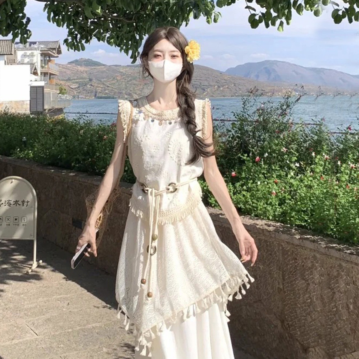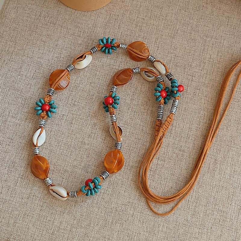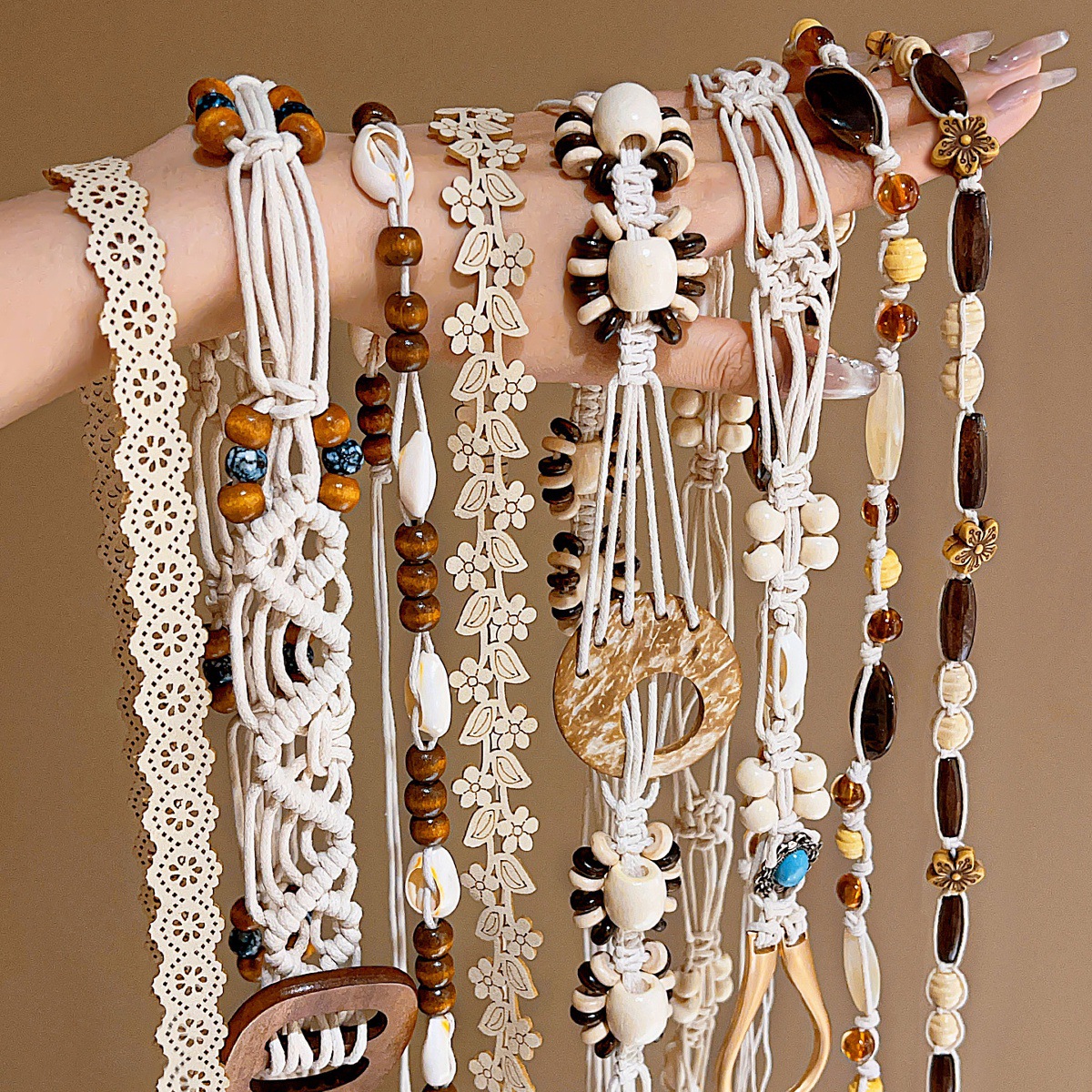 Богемный пояс для женщин, элитное украшение на талию, цепочка для брюк, аксессуар для юбки, универсальная тканая цепочка на талию с кисточками.