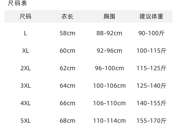 L; XL; 2XL; 3XL; 4XL; 5XL