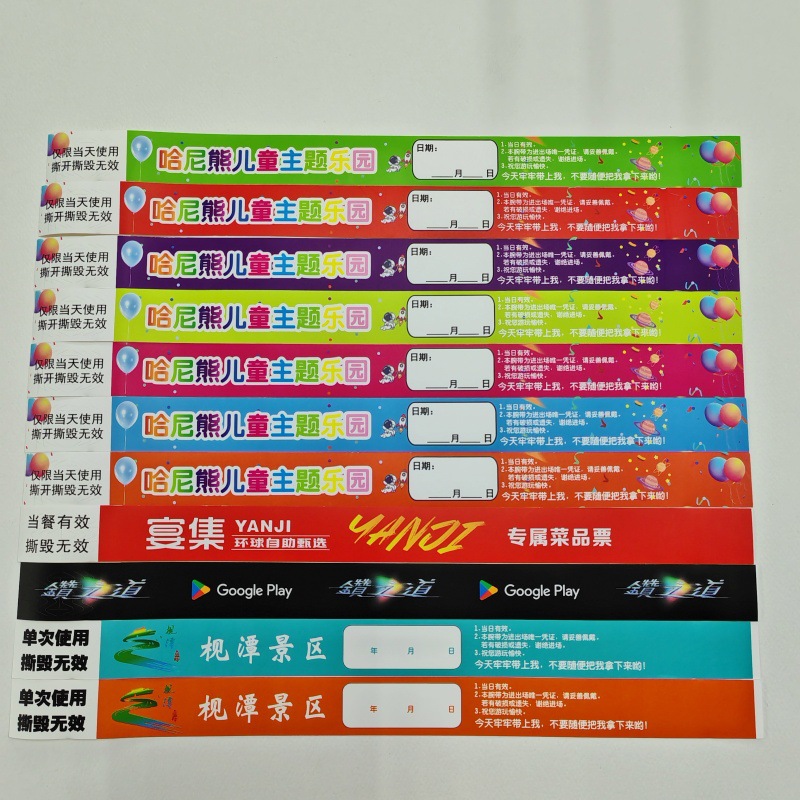 Заводские индивидуальные одноразовые браслеты, водонепроницаемые и устойчивые к разрыву, из синтетической бумаги DuPont, браслеты для посещения достопримечательностей.