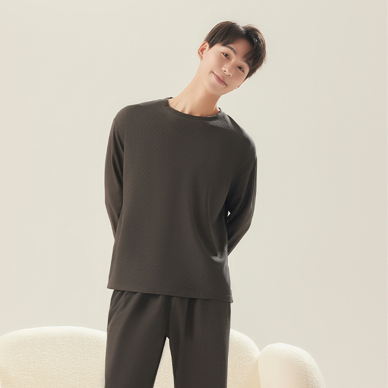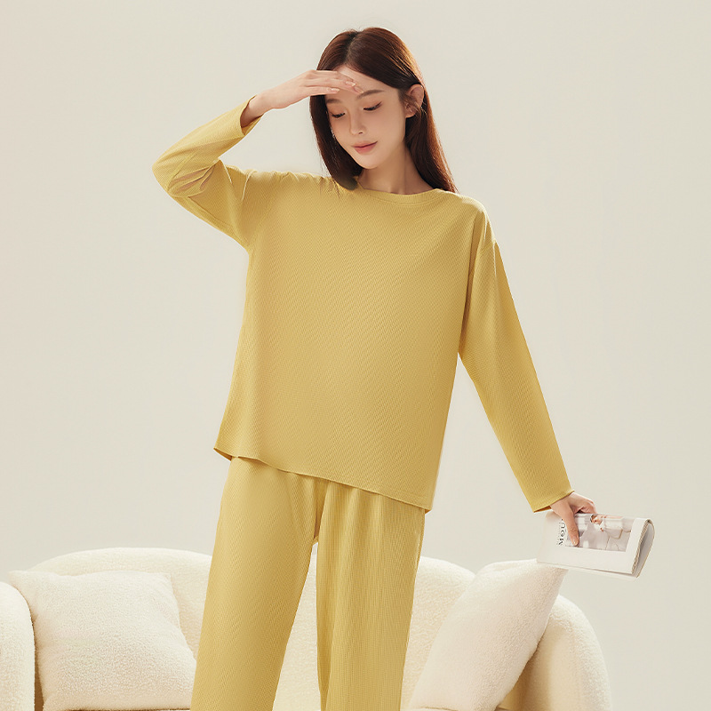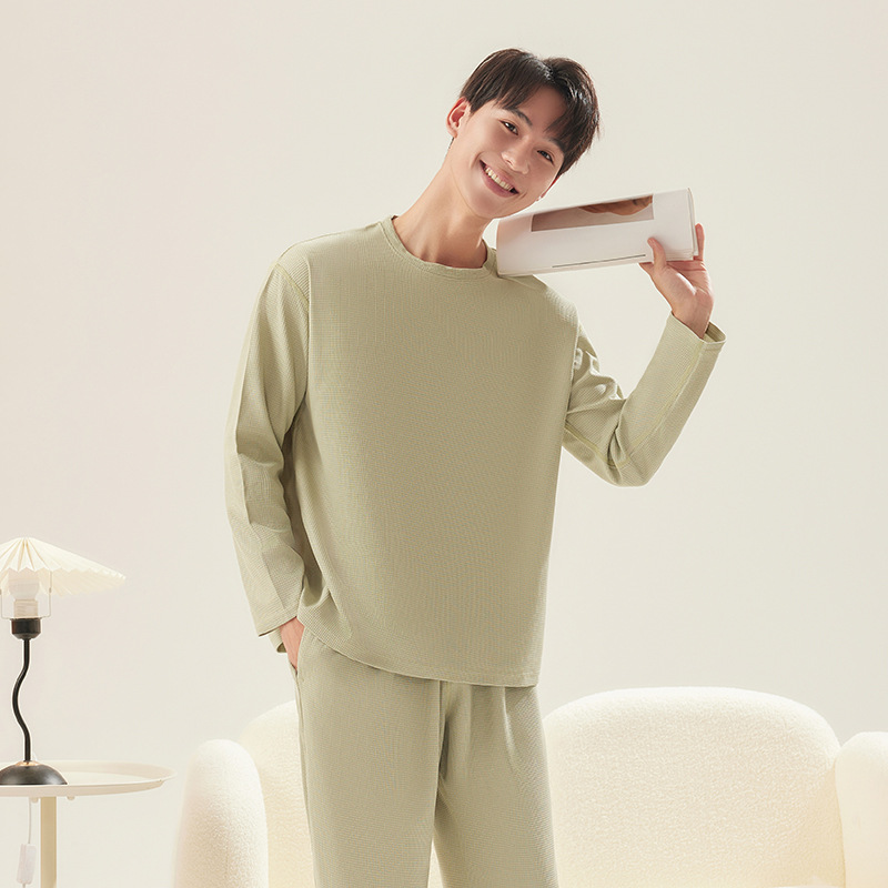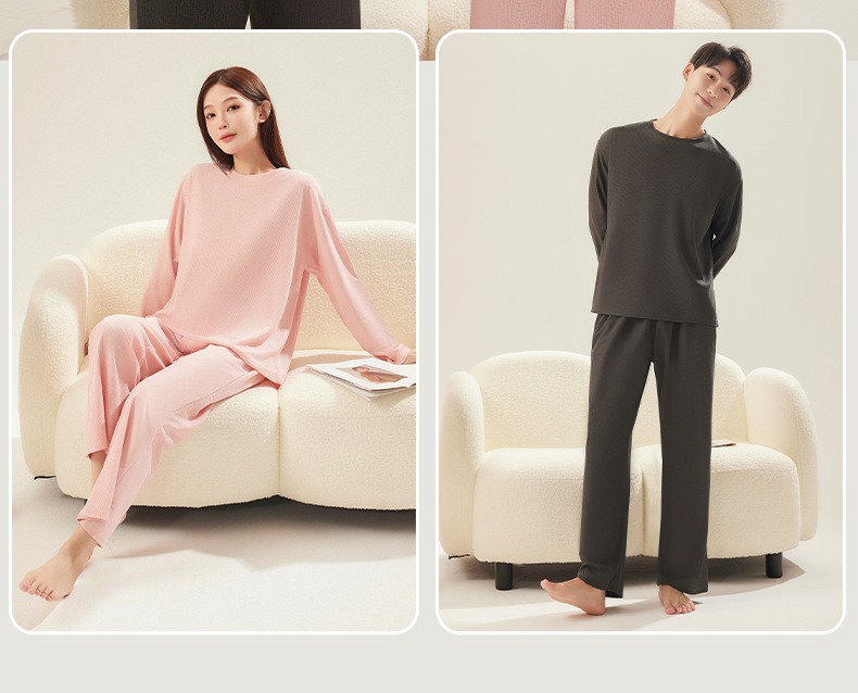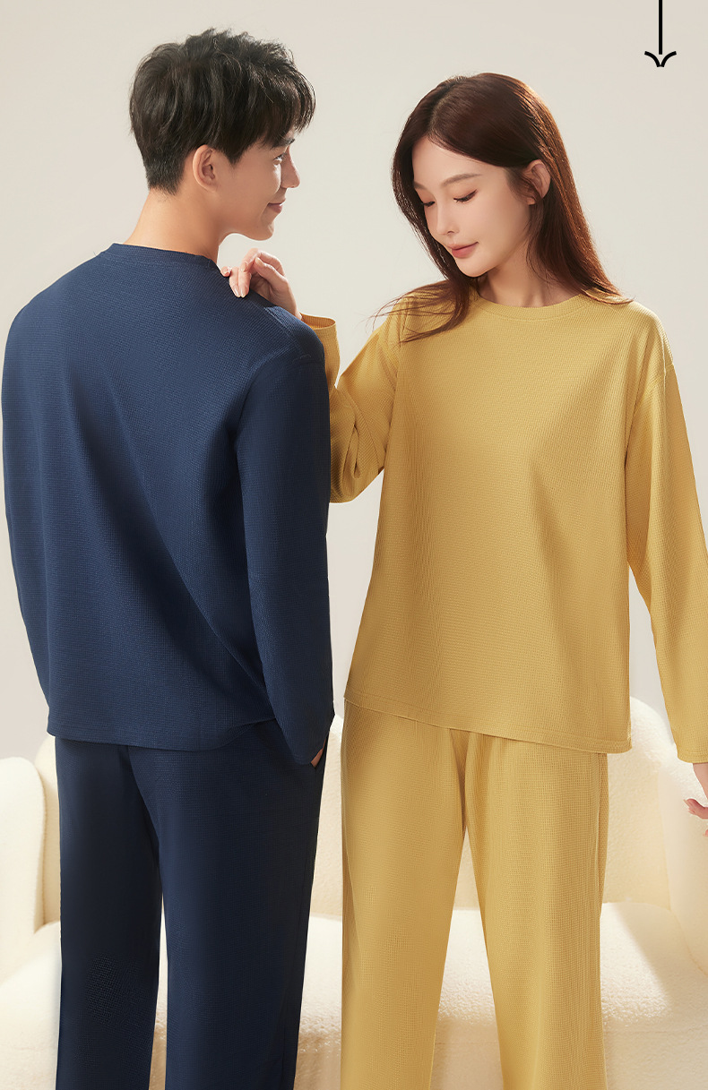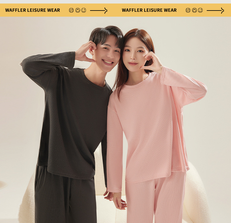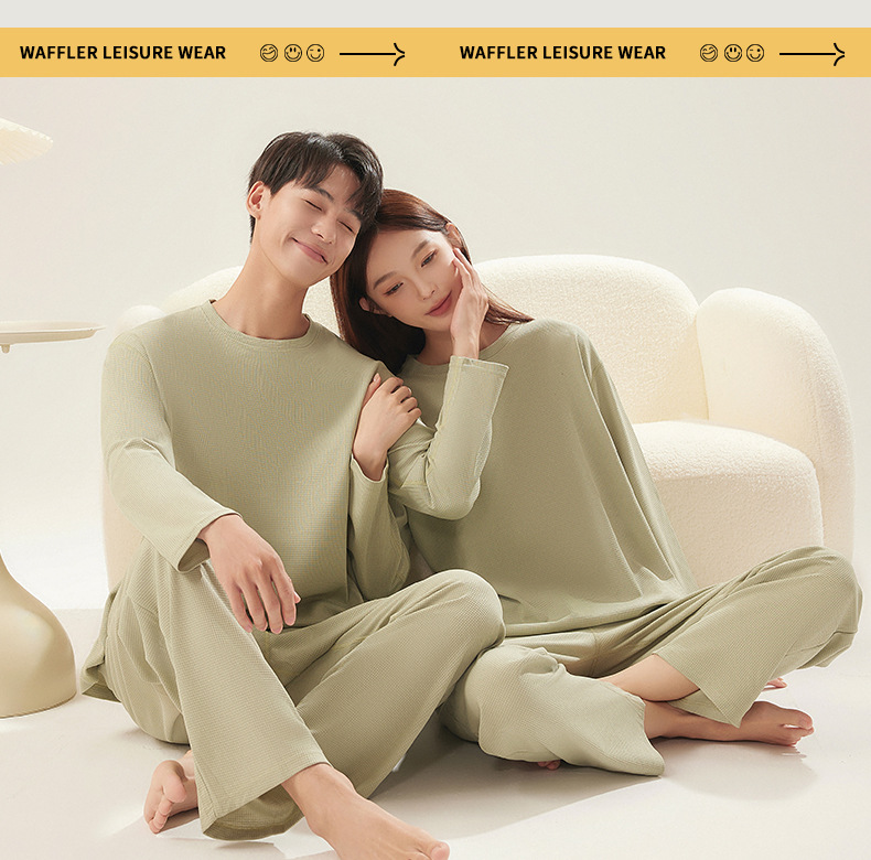Пижамы для пар, женские осенне-зимние брюки с длинными рукавами, новый вафельный свободный повседневный мужской домашний костюм большого размера