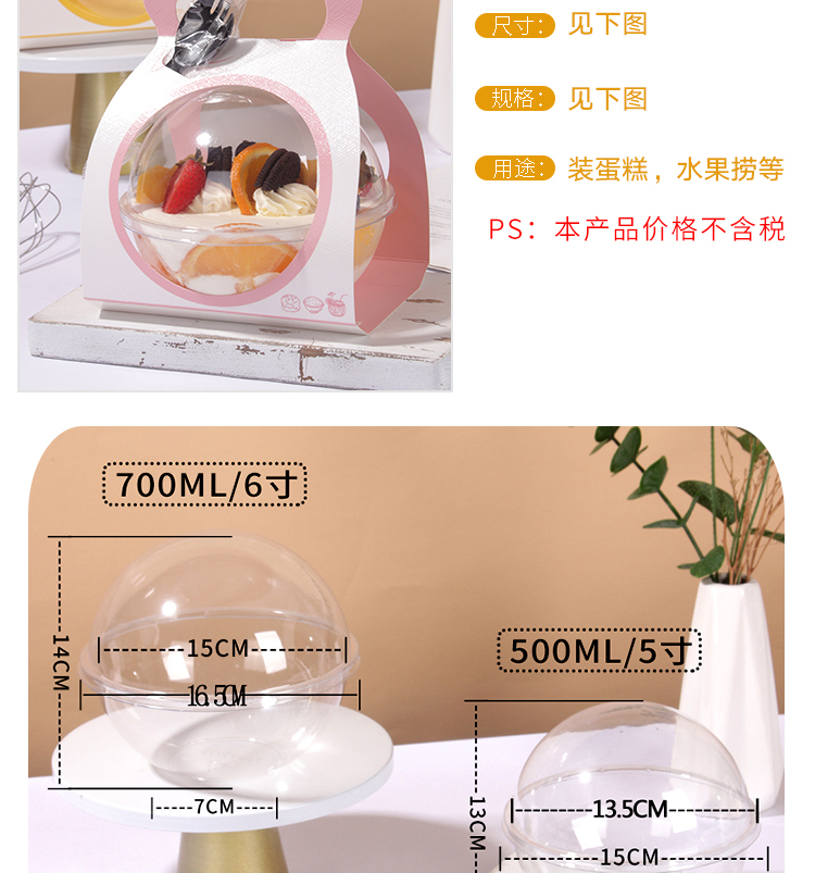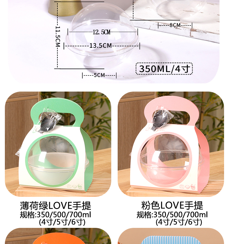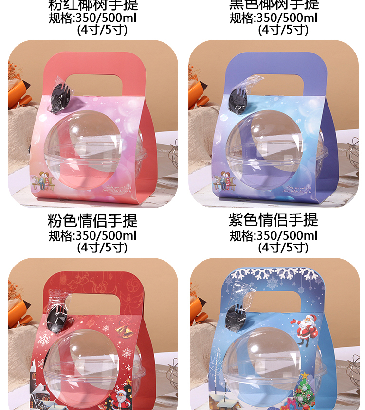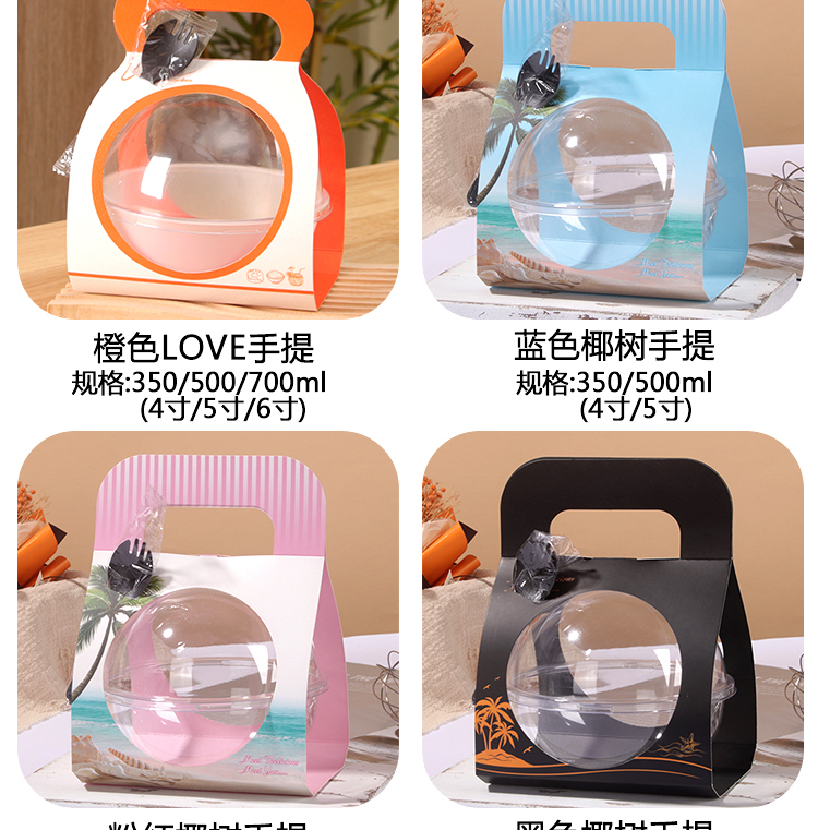 Упаковочная коробка для мусса в форме шара, хрустальная сумка, салатница, кокосовая миска, упаковка для рождественского торта, поке, жареного риса, легкого перекуса