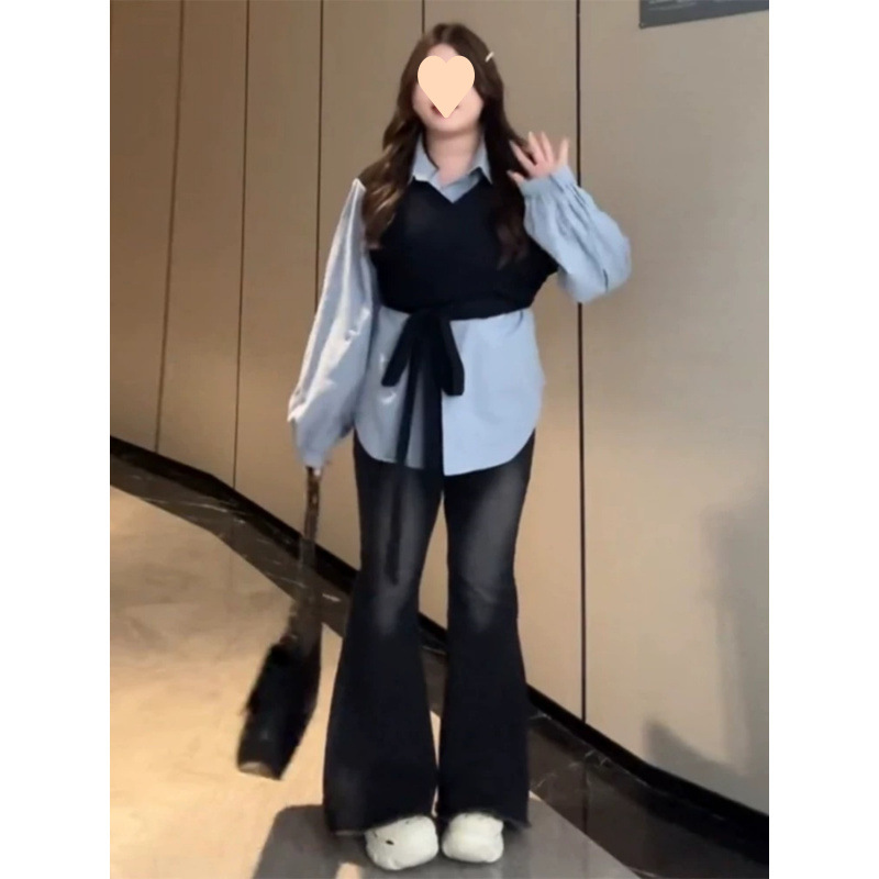 Женская рубашка больших размеров в ленивом стиле из двух частей с ремешками, осень 2025, новый модный топ для похудения