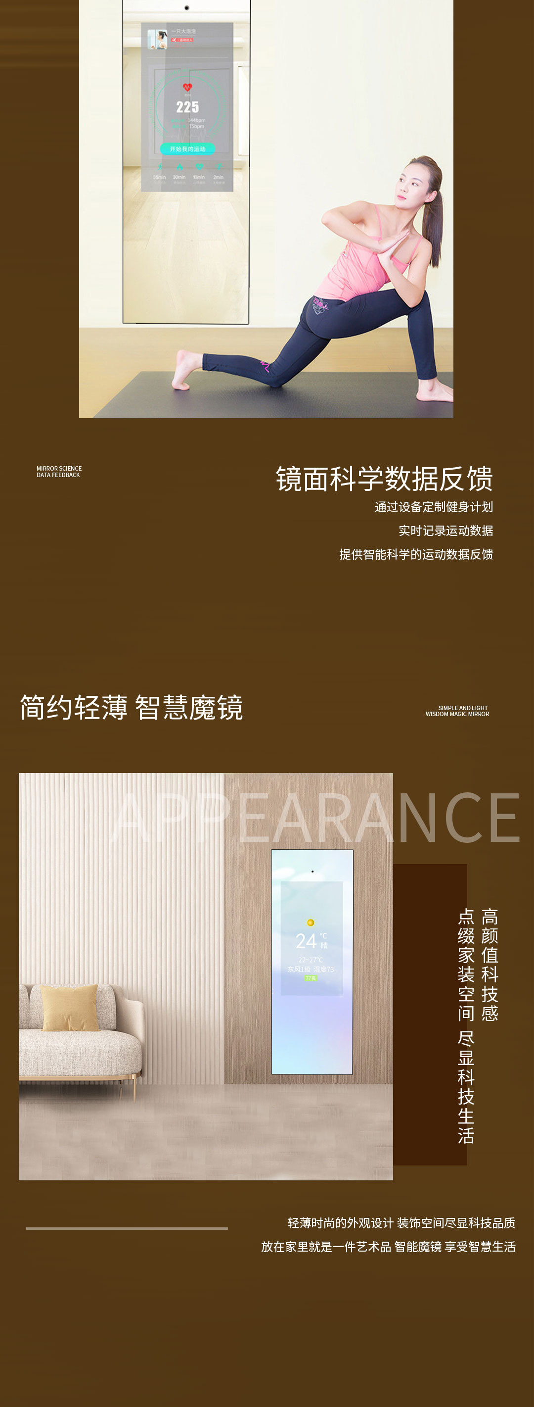 Умное зеркало для фитнеса, волшебное зеркало с ИИ, зеркало для всего тела, спортивное зеркало для йоги, простой и легкий дизайн, умный дом.