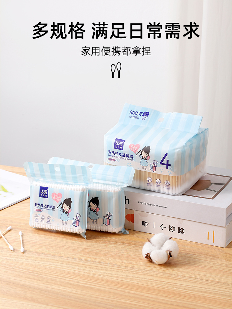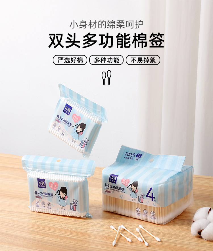 800 штук в наличии, хлопчатобумажные тампоны в пакетиках, одноразовые двусторонние косметические ватные тампоны, обработка ватных тампонов для домашнего супермаркета в отеле и супермаркете