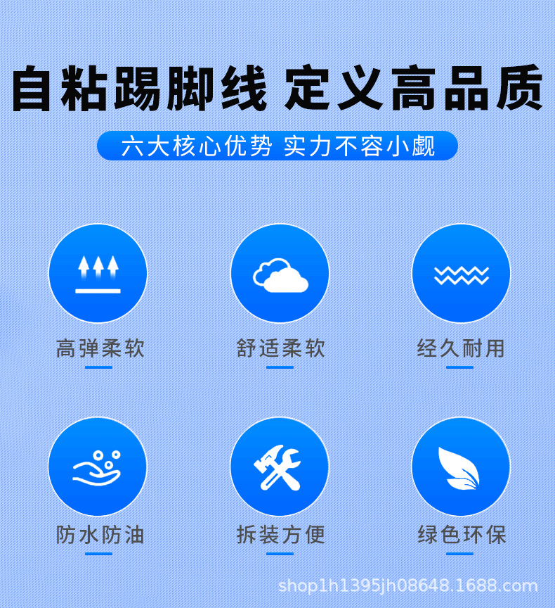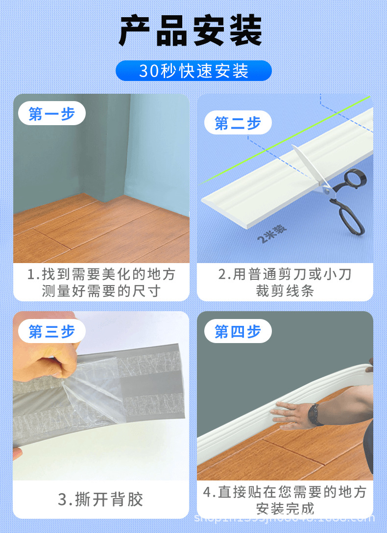 Ширина 6cm *Длина 1m [Поставляется с самоклеящимся плинтусом]; Ширина 8cm *Длина 1m [Поставляется с самоклеящимся плинтусом]; Ширина 10cm *Длина 1m [Поставляется с самоклеящимся плинтусом]; Ширина 12cm *Длина 1m [Поставляется с самоклеящимся плинтусом]