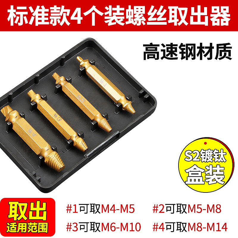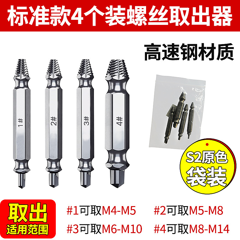 产品:4支套装 高速钢S2双头断头螺钉螺丝取出器