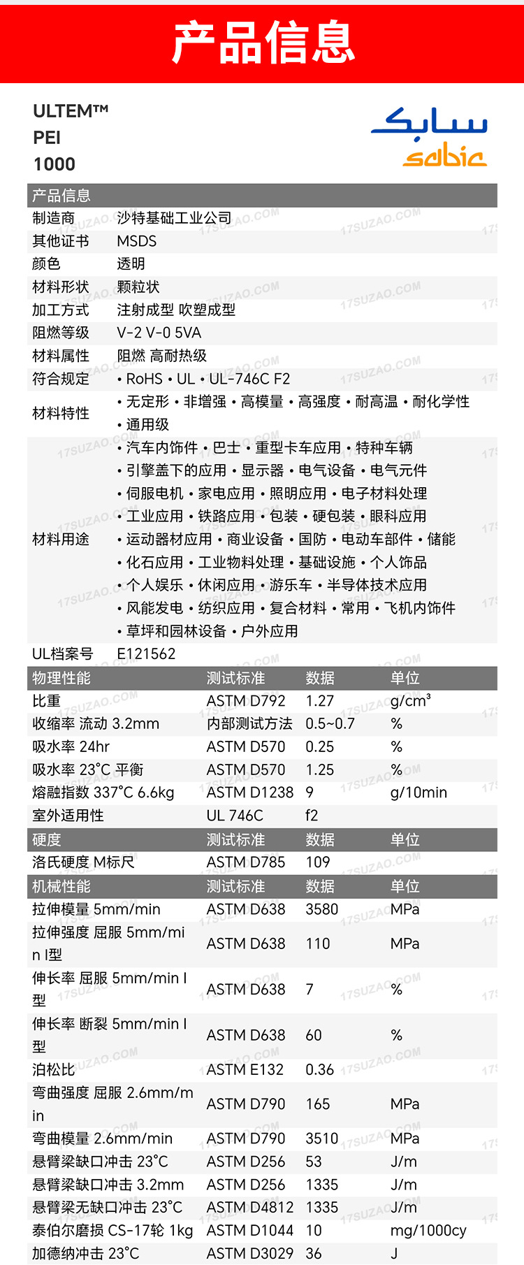 LLDPE Saudi SABIC PEI 1000NC огнестойкий высокотемпературный пластик для литья под давлением и выдувного формования, высокопрочные пластиковые гранулы