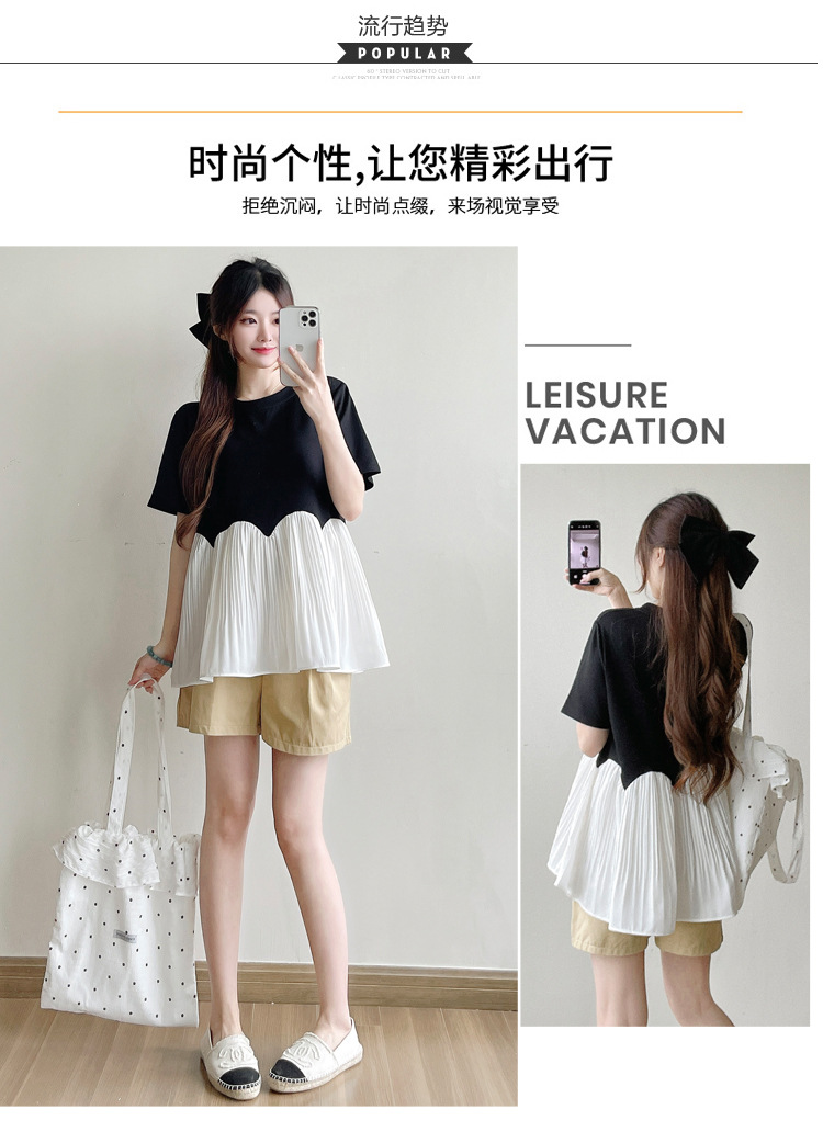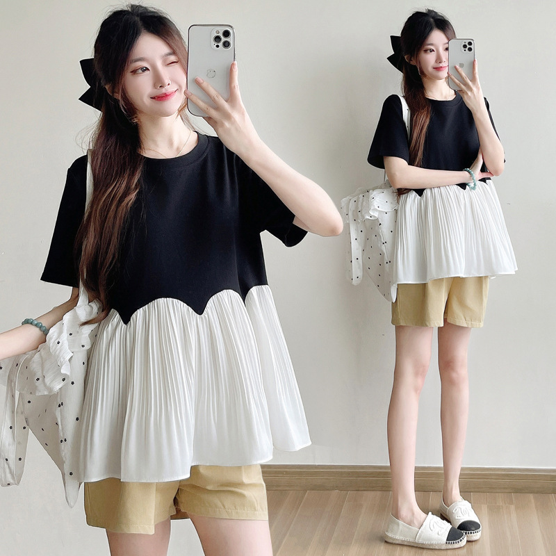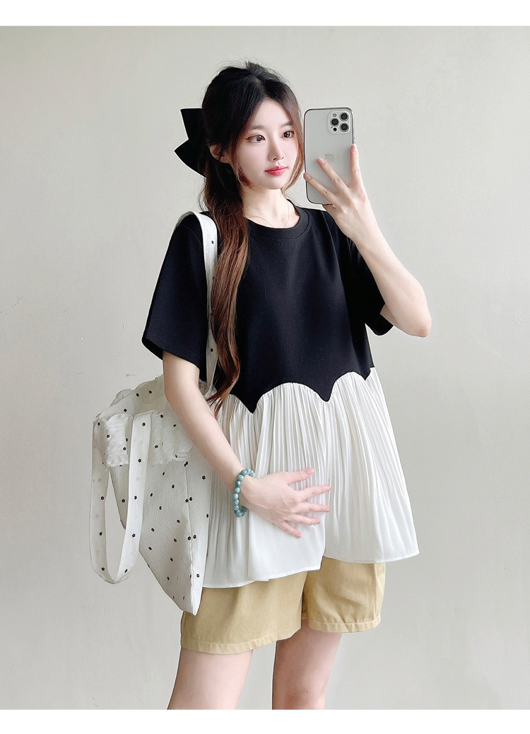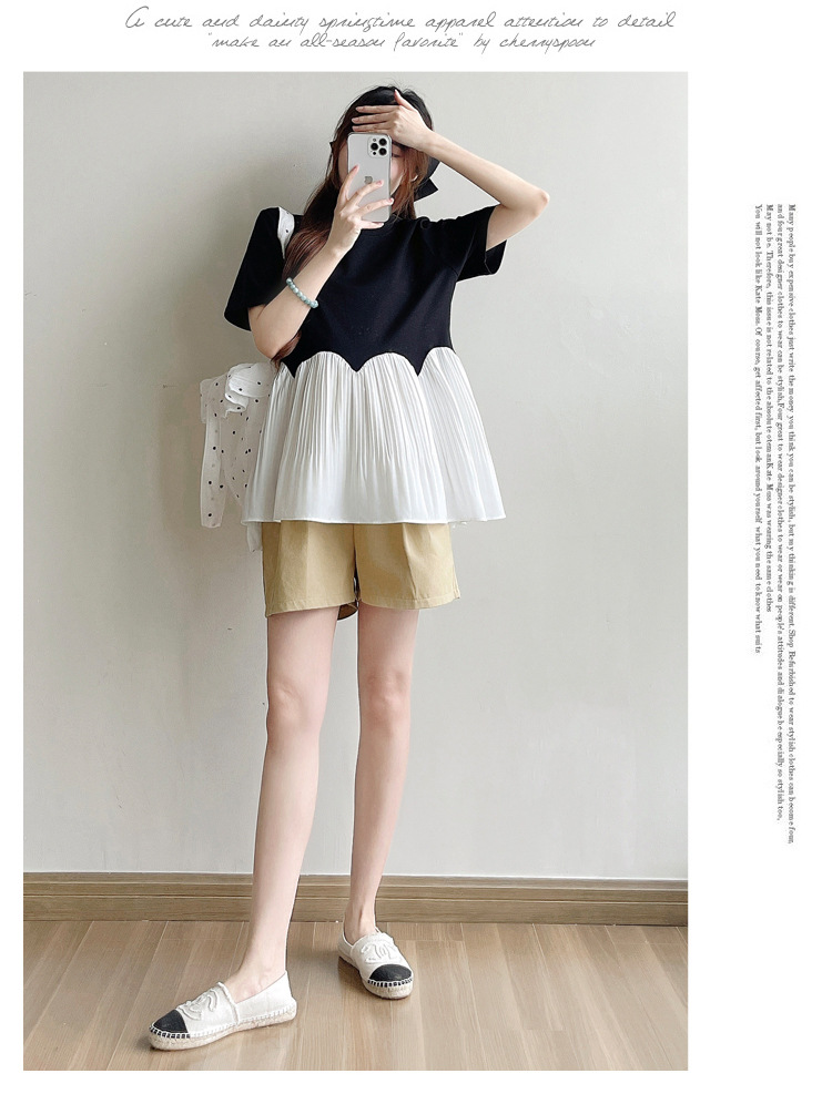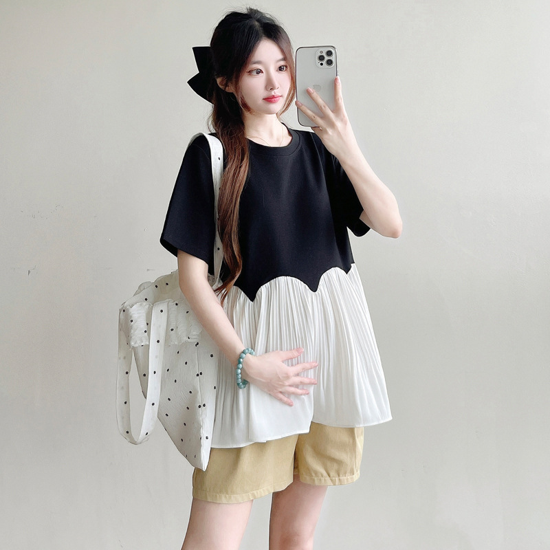 Одежда для беременных, новинка 2025 года, летняя модная рубашка для беременных, универсальная свободная черно-белая кукольная рубашка, топ