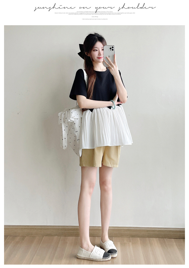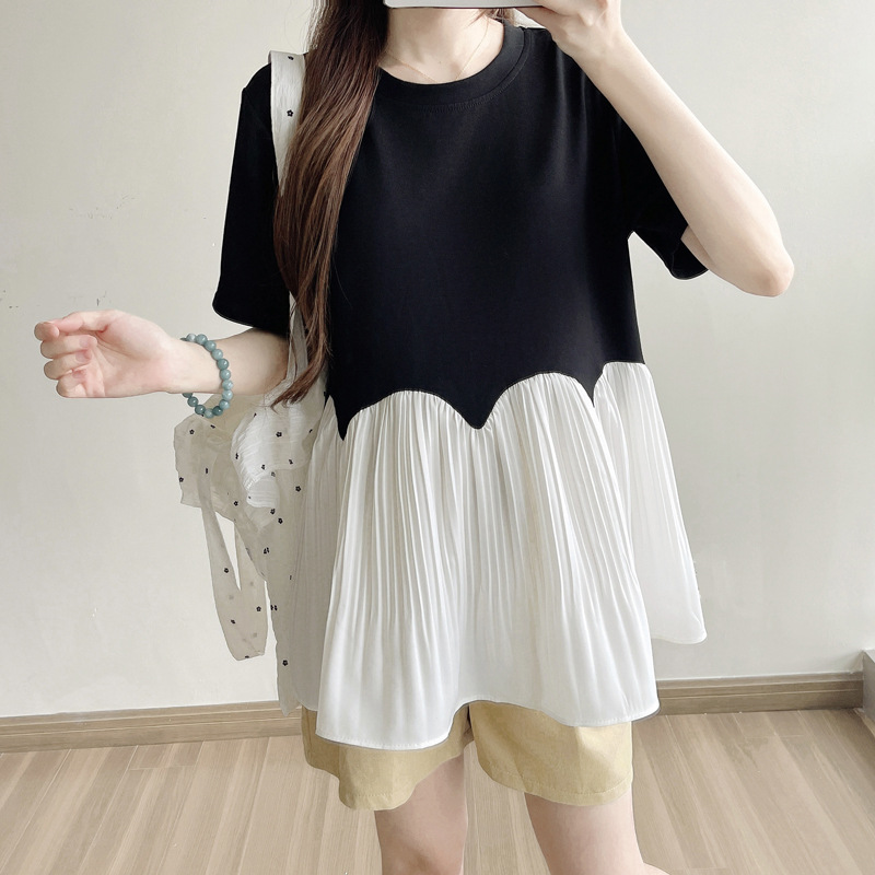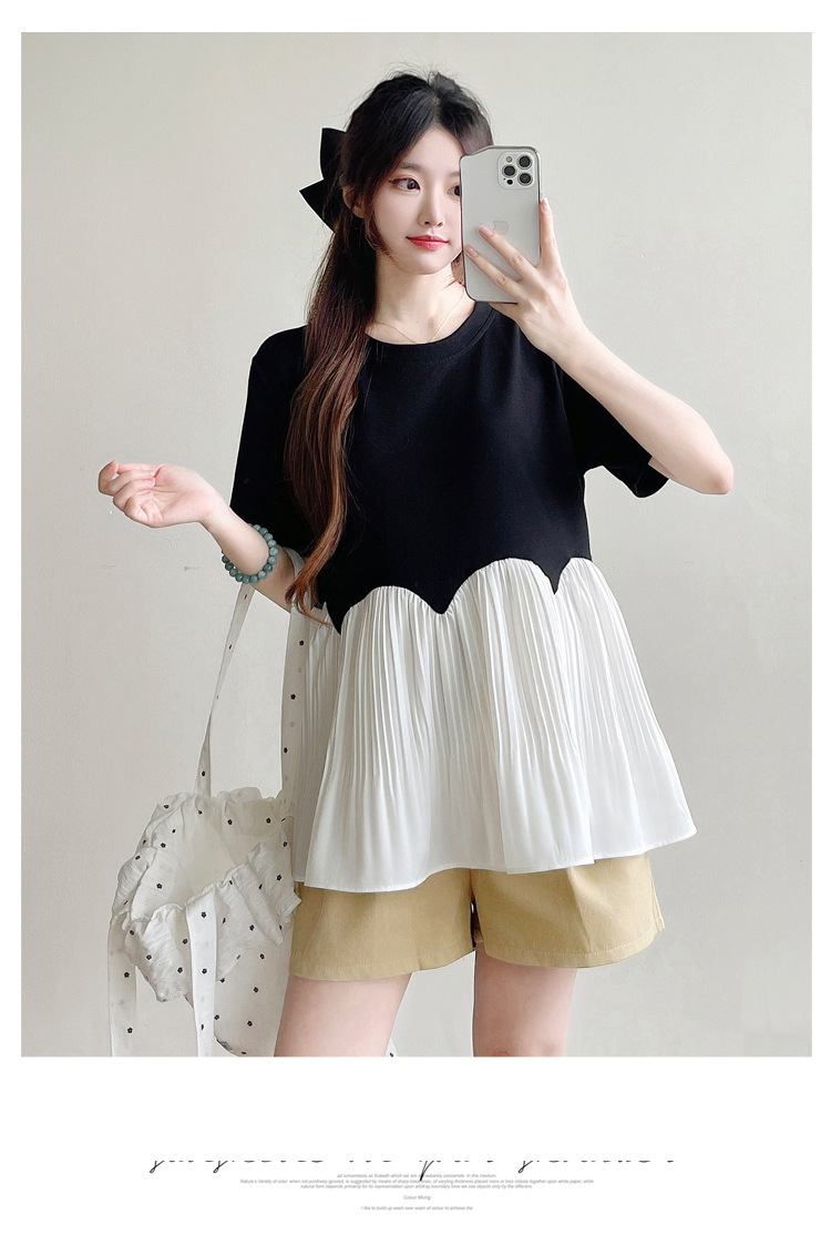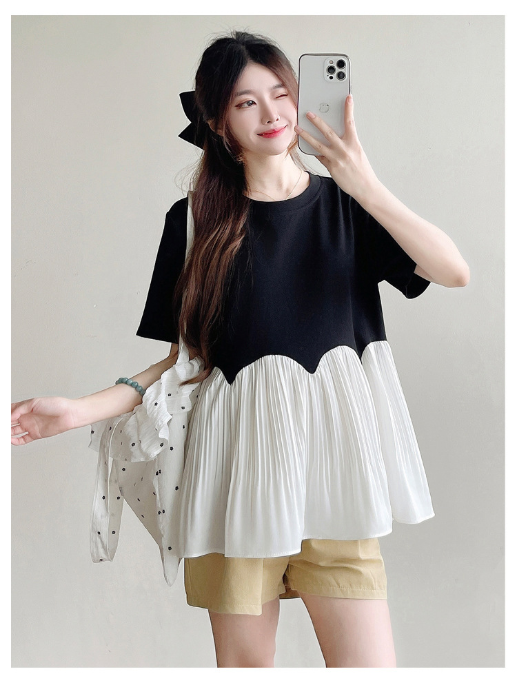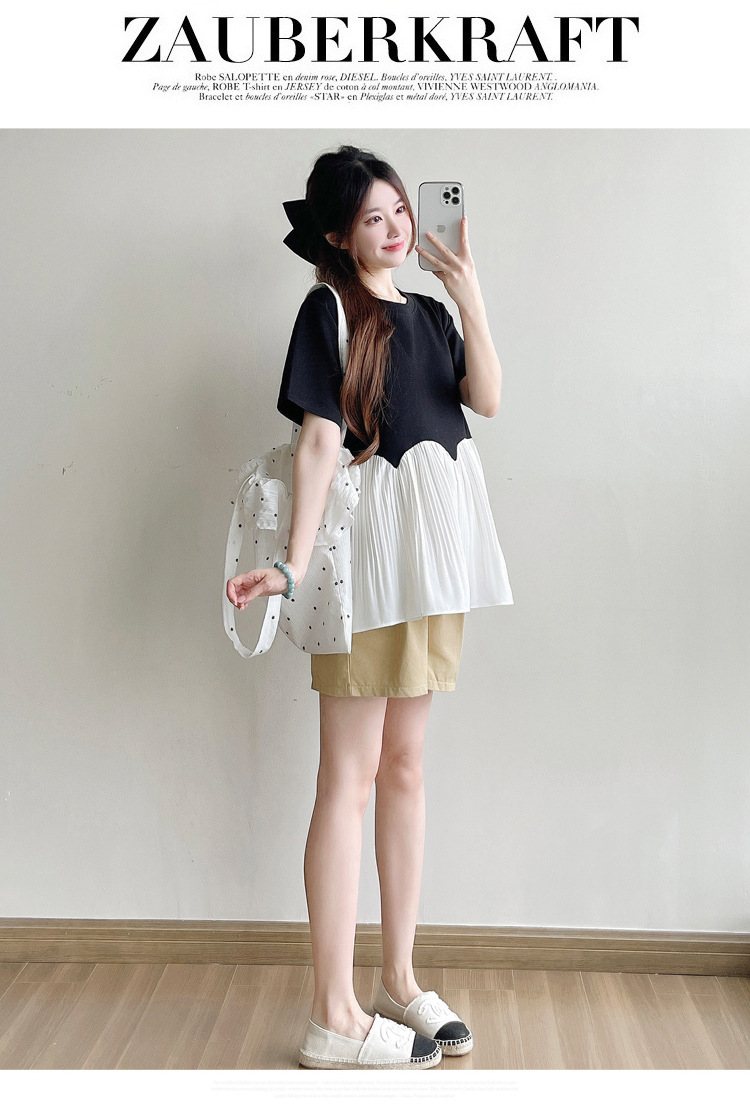 Одежда для беременных, новинка 2025 года, летняя модная рубашка для беременных, универсальная свободная черно-белая кукольная рубашка, топ