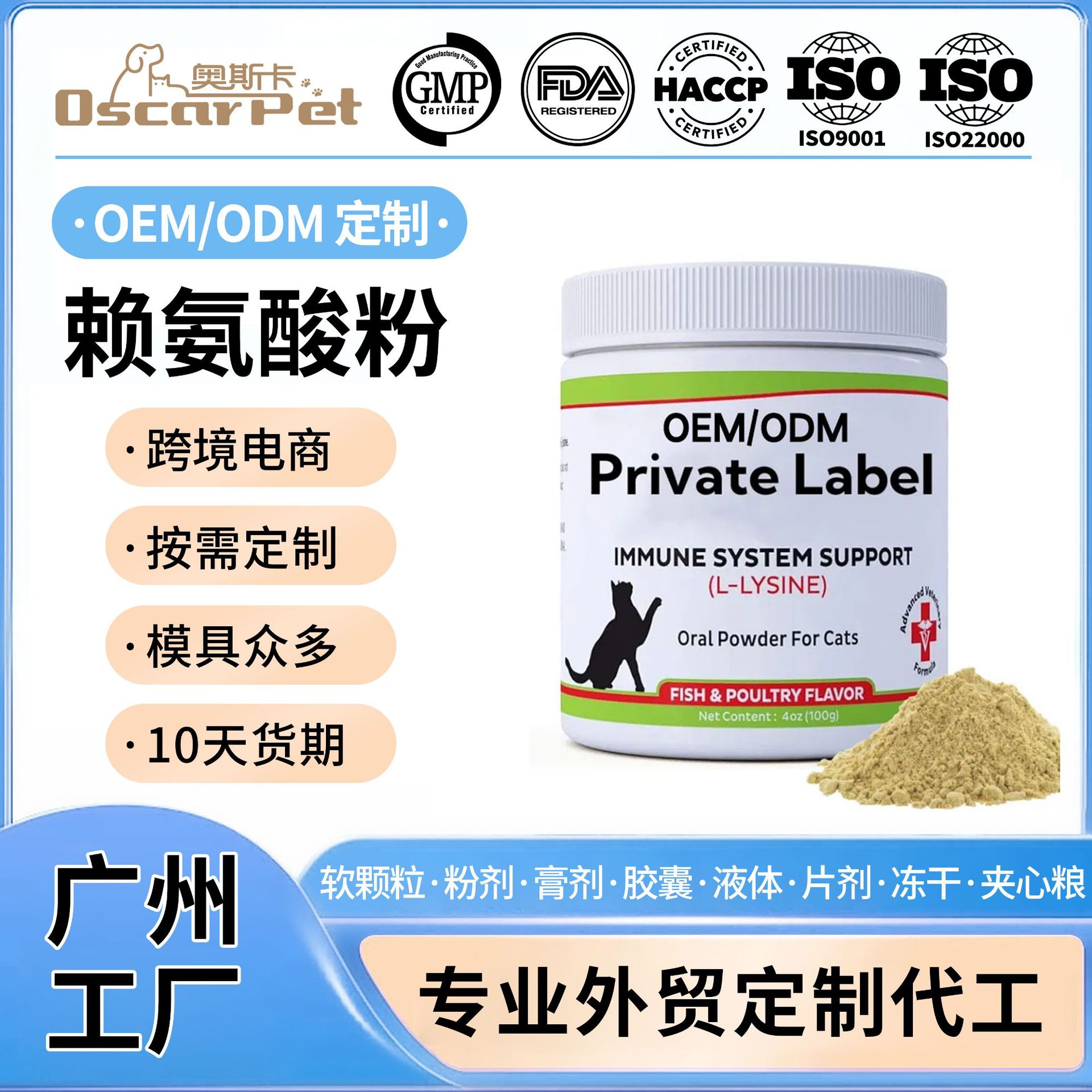 Трансграничный лизиновый комплекс для собак и кошек, лизиновый питательный порошок, порошковая добавка для поддержания иммунитета и здоровья дыхательных путей у животных, OEM