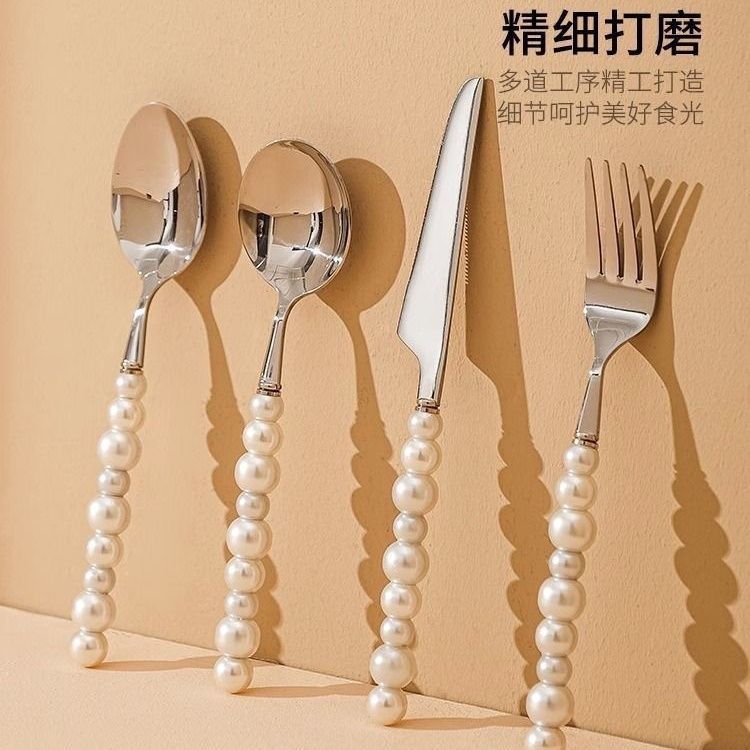 Набор столовых приборов из нержавеющей стали в стиле лёгкой роскоши для студентов, 4 предмета, с керамическими ручками, пищевой керамики, высококачественные ложка, нож и вилка
