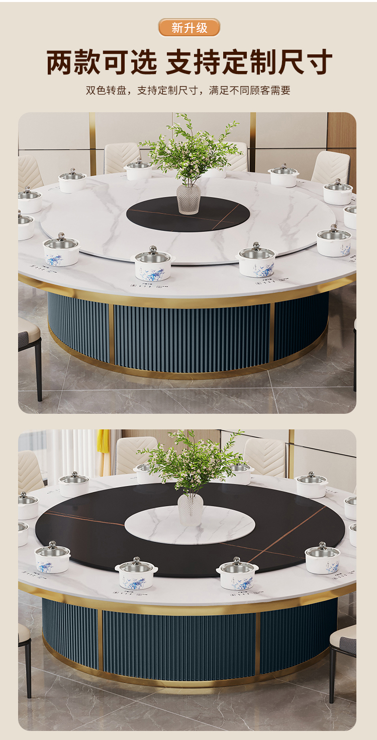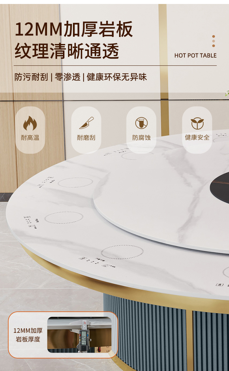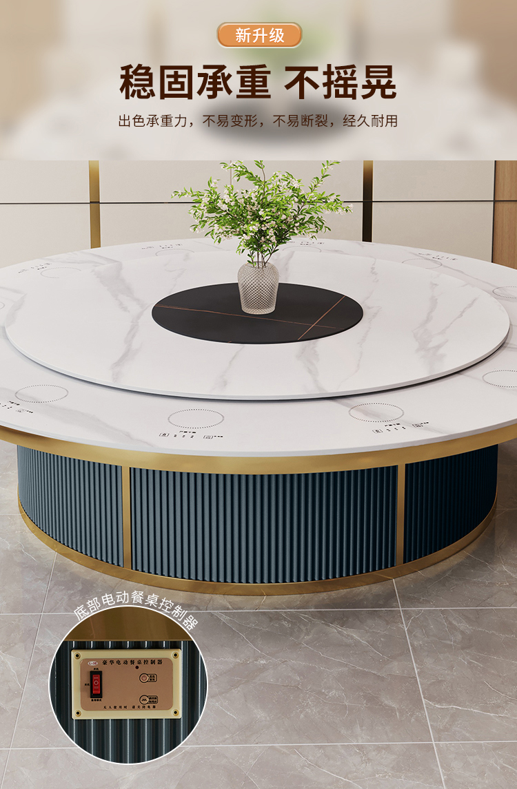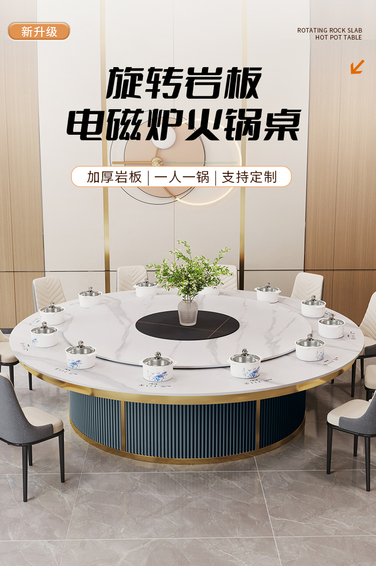 ✅ Электрический большой круглый стол для горячего горшка, индукционная плита, встроенный сланцевый обеденный стол для отеля, клуба и стулья, скрытые для одного человека