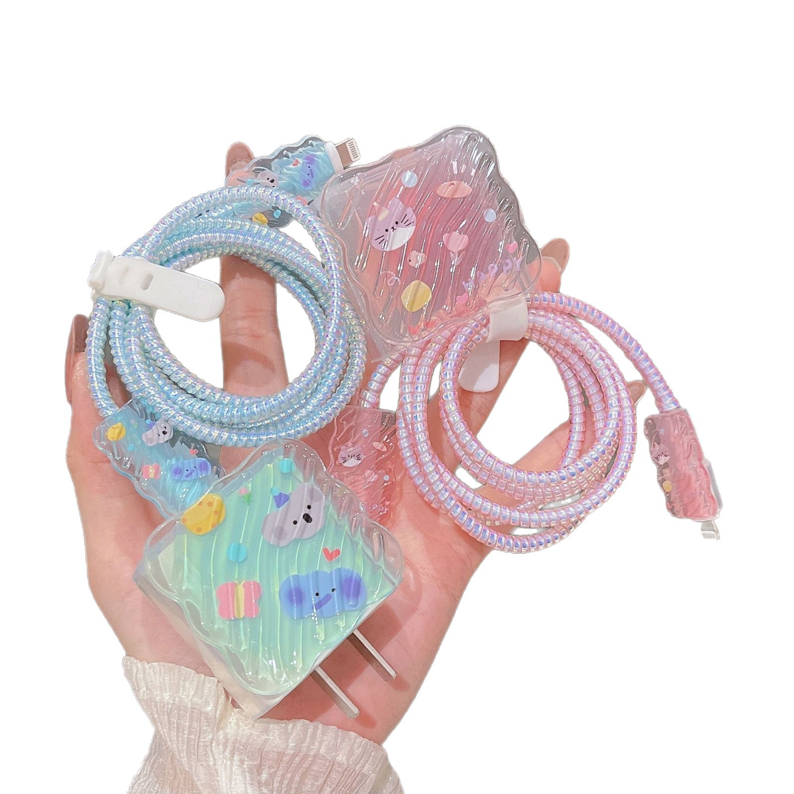 Подходит для Apple, защитный чехол для зарядной головки, 20 Вт, кабель для передачи данных, зарядное устройство, защитный чехол, защита от разрыва, мультяшная розовая волна