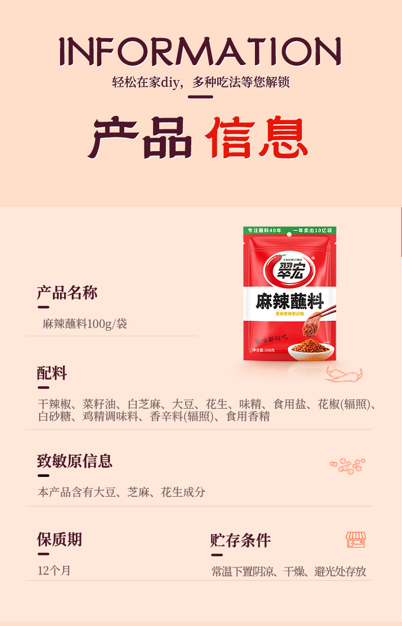 [Cuihong] Приправа для соуса 100 г.; [Цуйхун] Острый соус для соуса 100 г