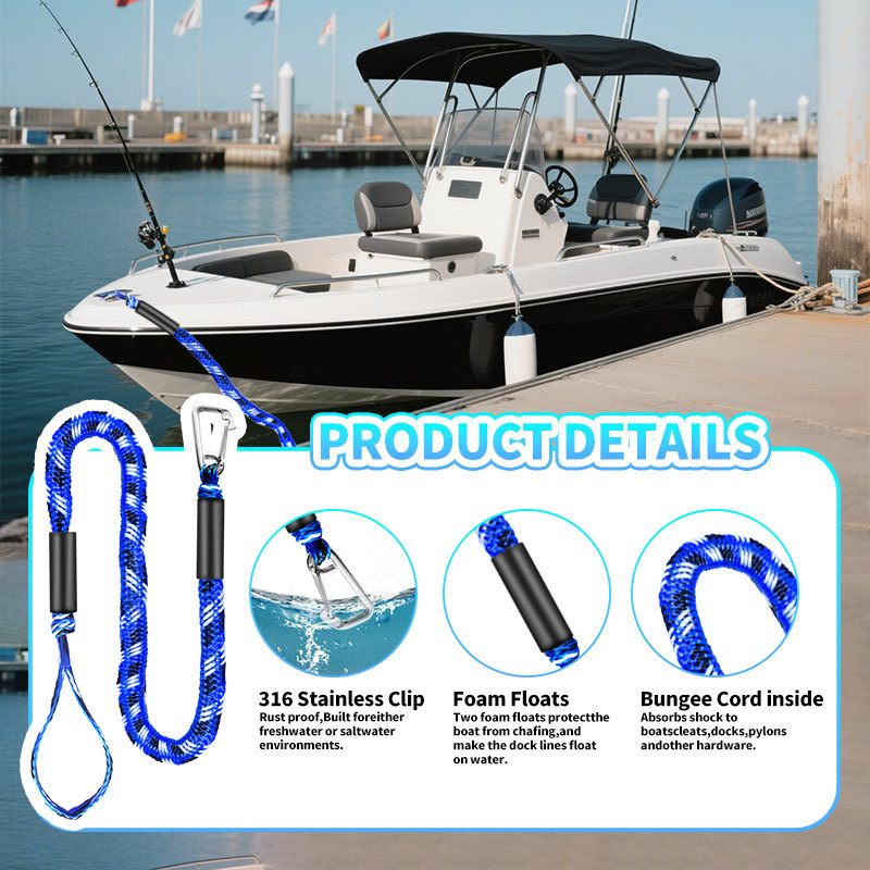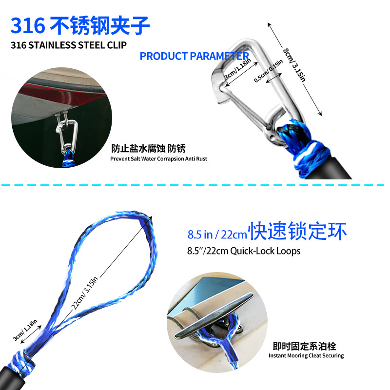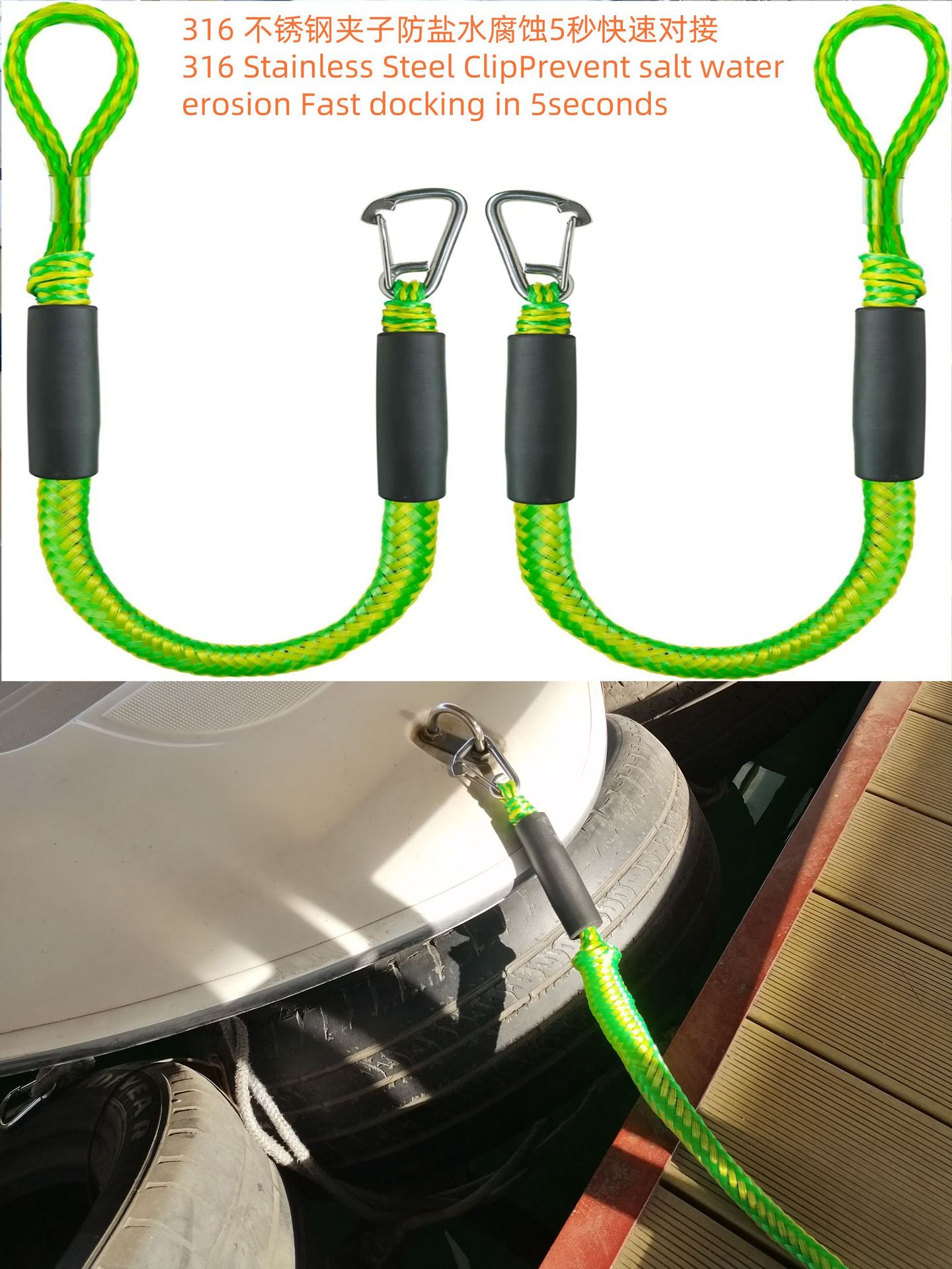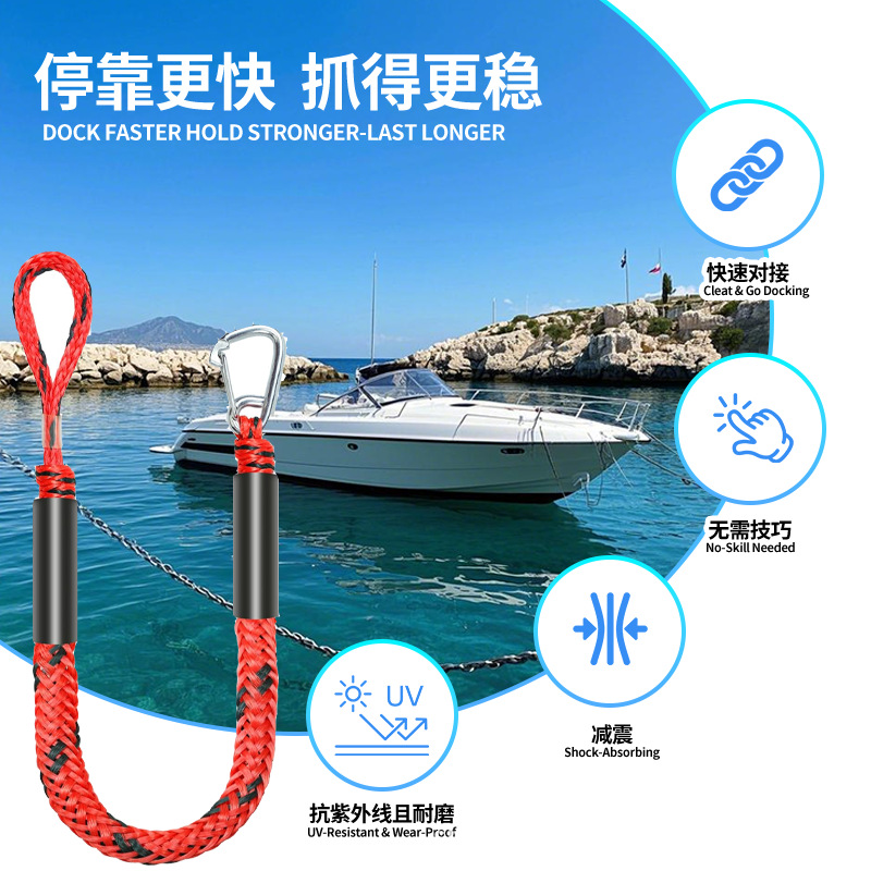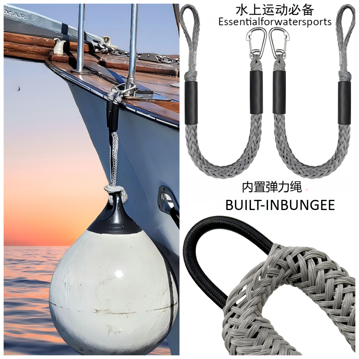 双浮子防沉保护:标配两个高密度泡沫浮子,环绕绳体两侧,不仅能缓冲船体与码头的摩擦,更能在弹力绳意外落水时保持漂浮状态,避免丢失,操作更安心。