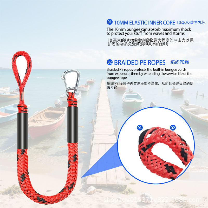 全耐候材质:弹性绳体采用特殊配方材料,可抵御酸、碱、海水及化学物质腐蚀,表面 PE 编织层抗紫外线老化,在高盐、高湿、强紫外线等户外环境下长期使用不易开裂、褪色,使用寿命提升 3 倍以上。