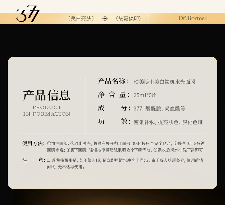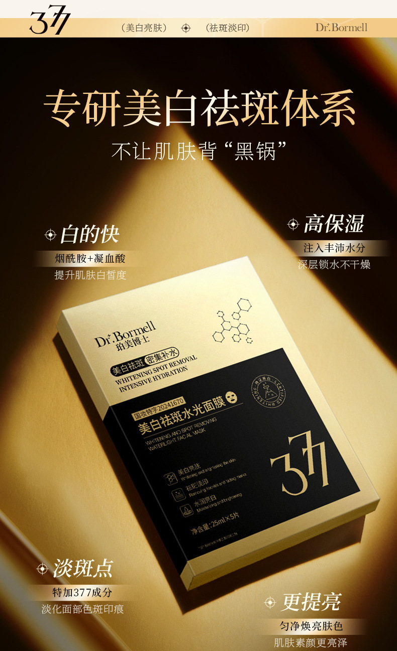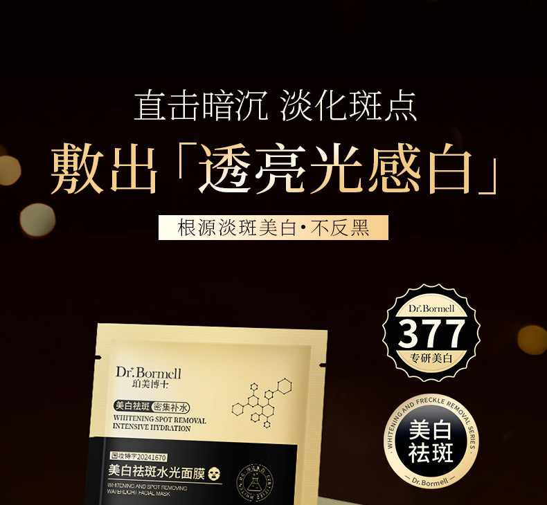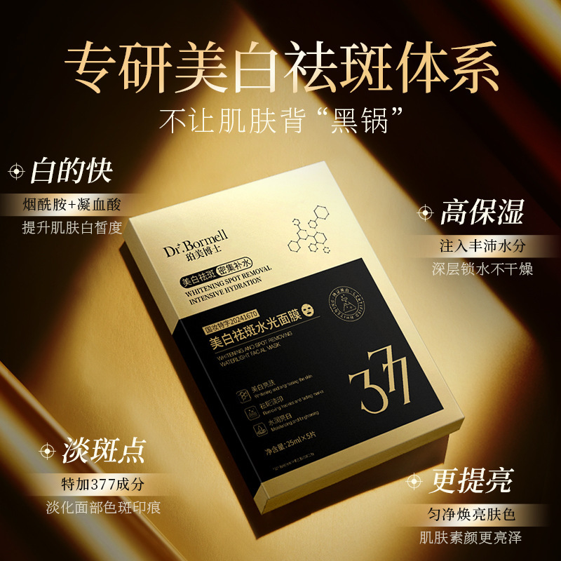 Универсальная маска Dr. Pomeranian 377 от Douyin для отбеливания и удаления веснушек, улучшающая тусклые пятна и осветляющая патч-маска с легкими следами