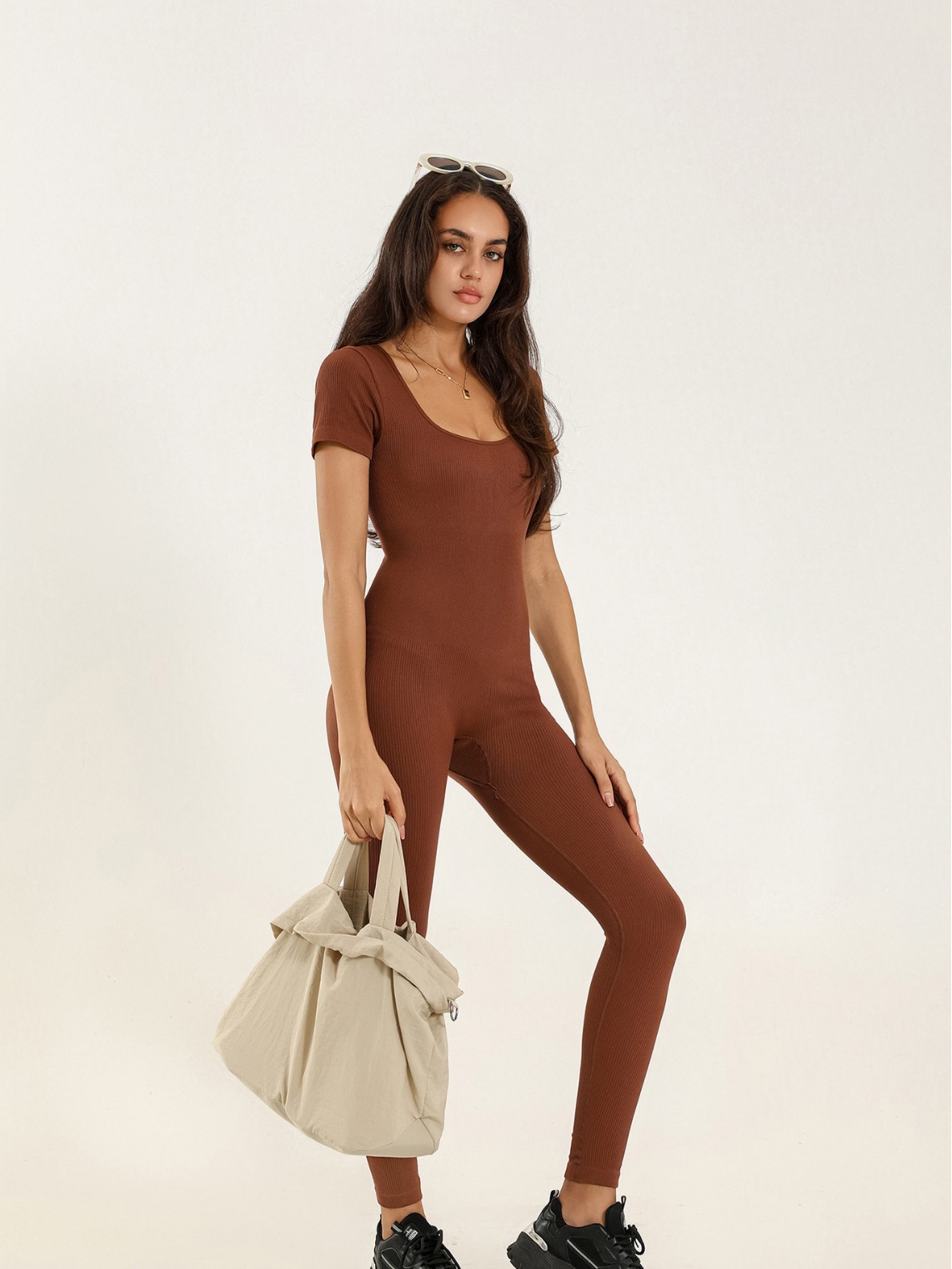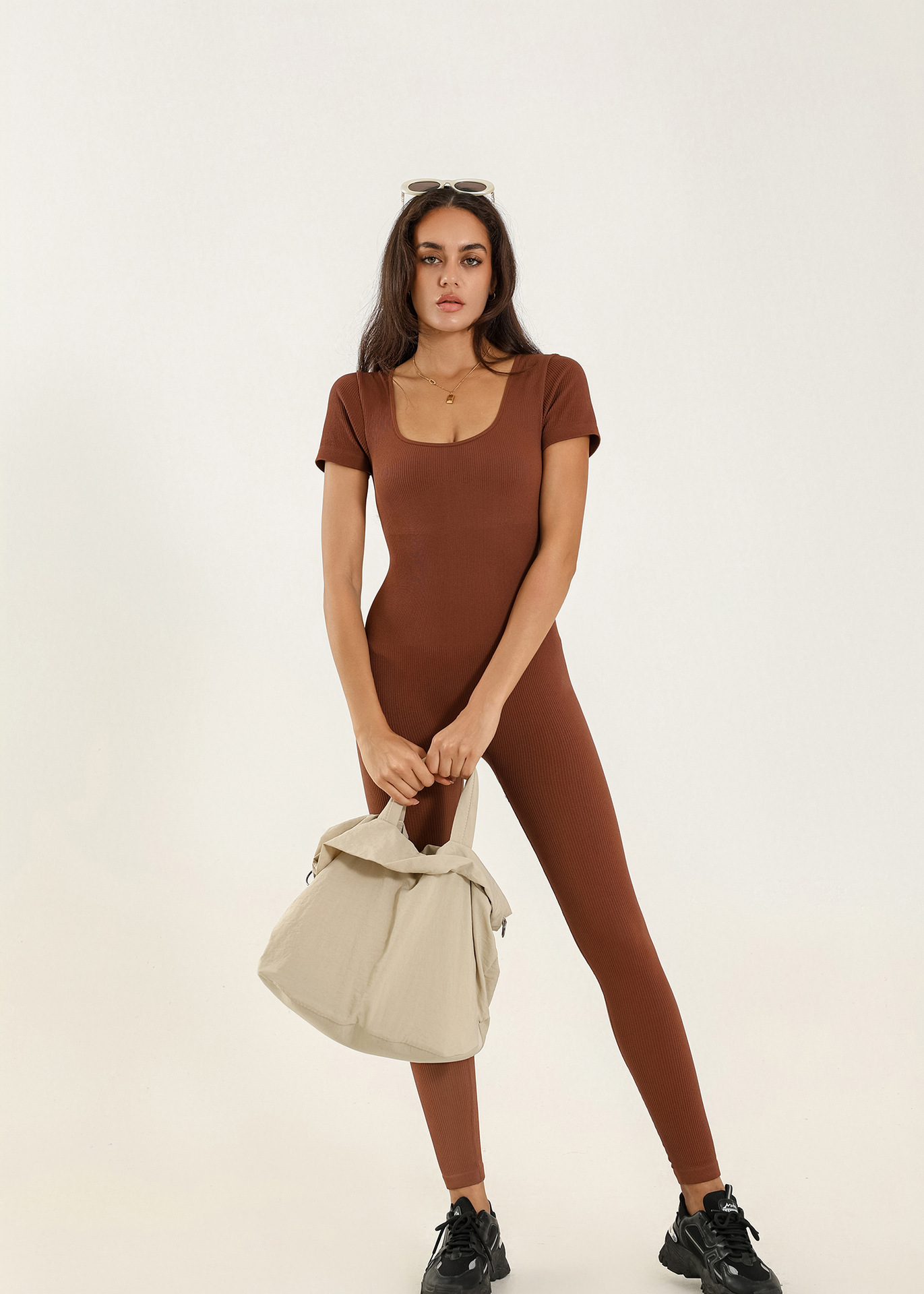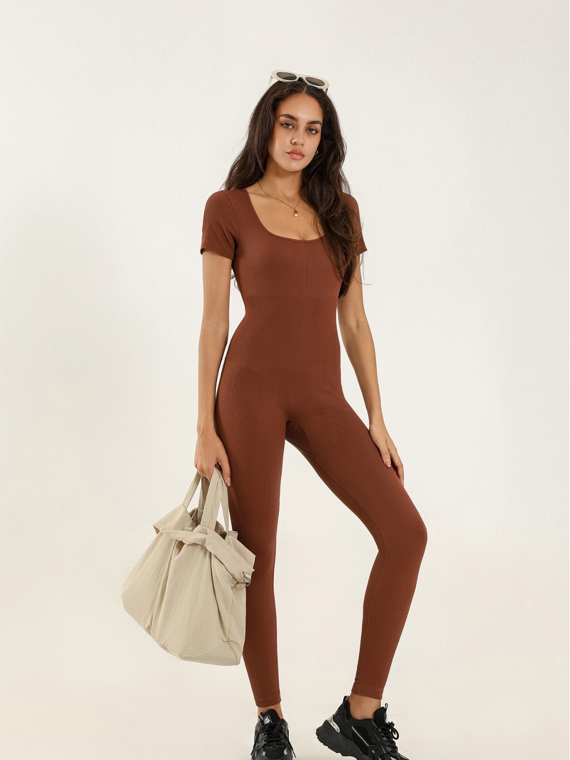 Йога-комбинезон с короткими рукавами и квадратным вырезом, спортивный костюм с эффектом подтяжки талии и подъема ягодиц, корректирующий фигуру, от трансграничного производителя