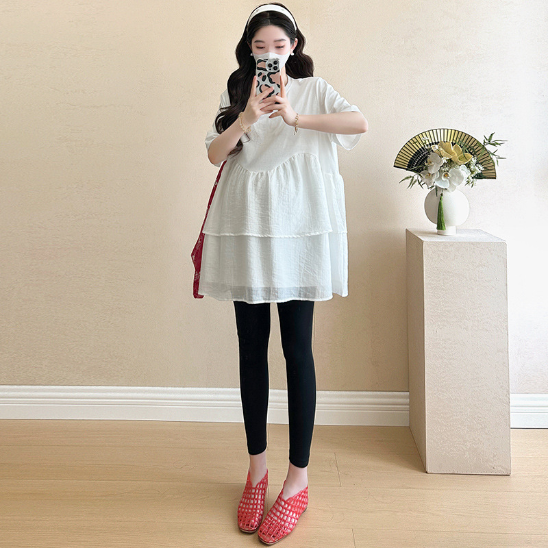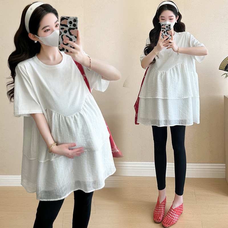 Реальный снимок на складе. Новый летний топ в корейском стиле со свободным подолом средней длины для беременных.