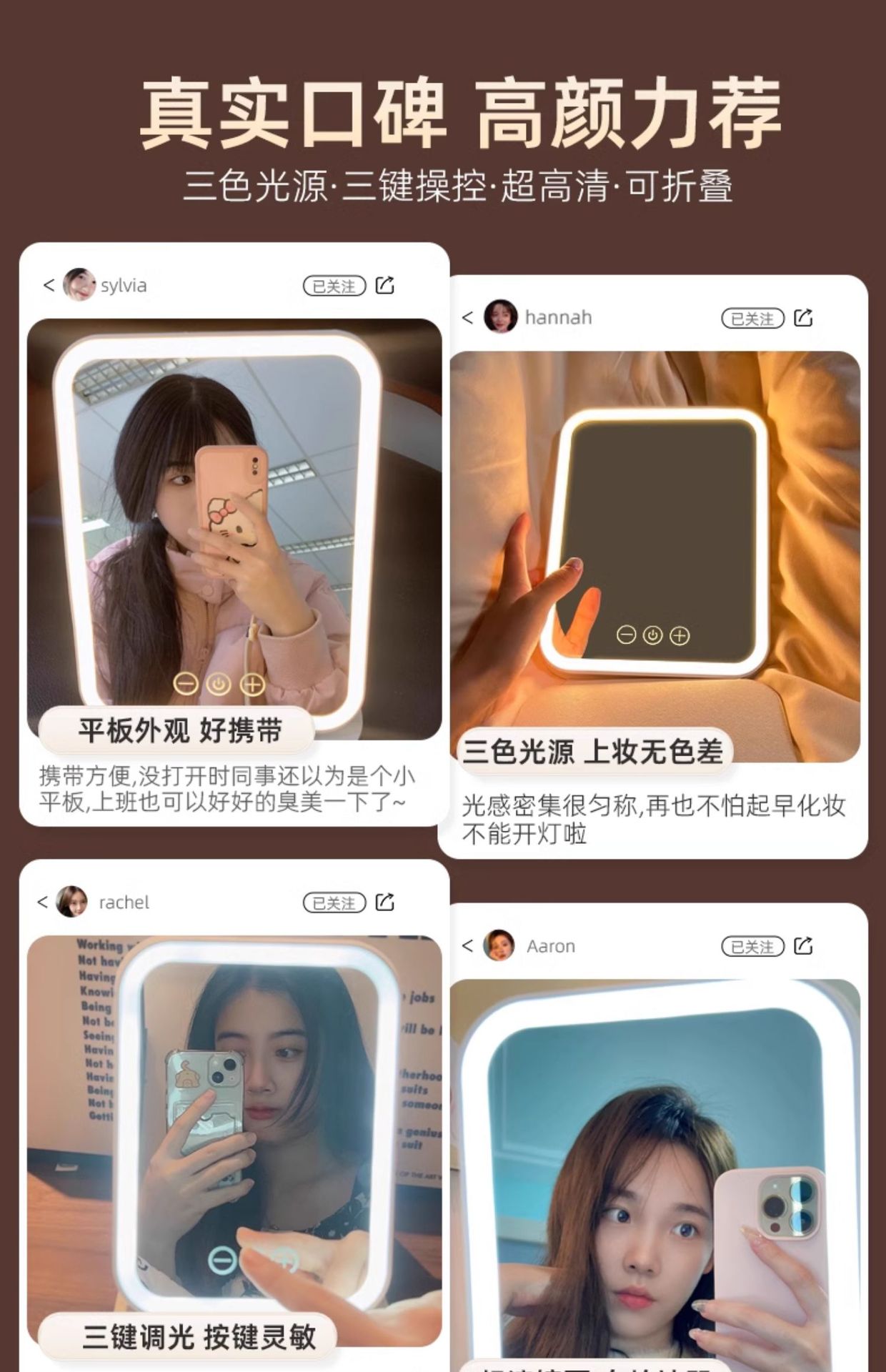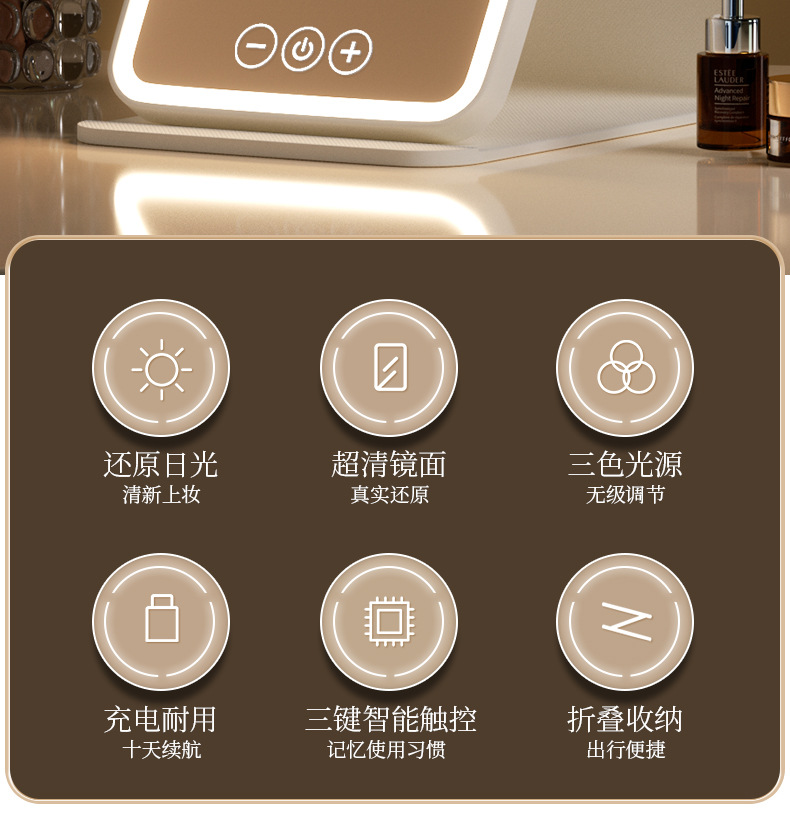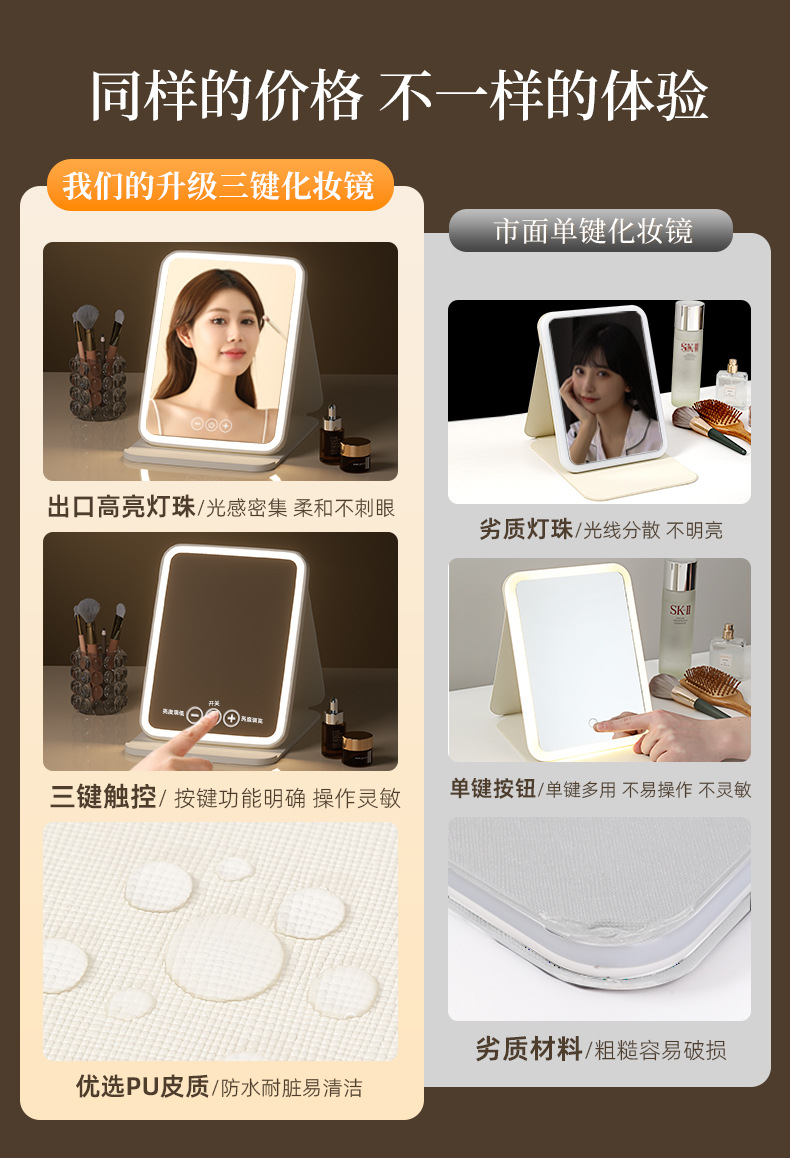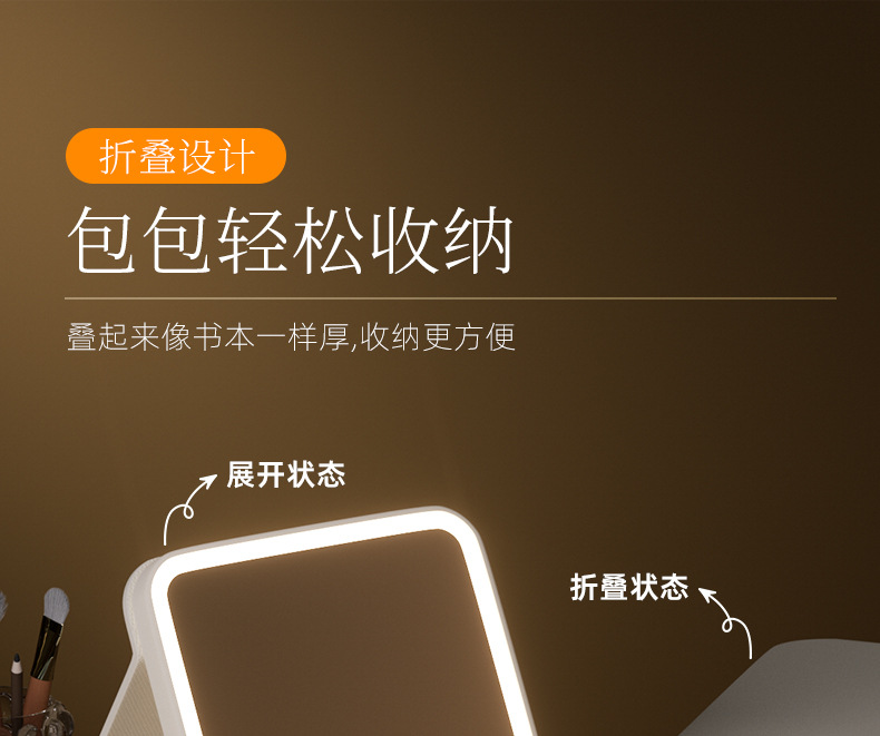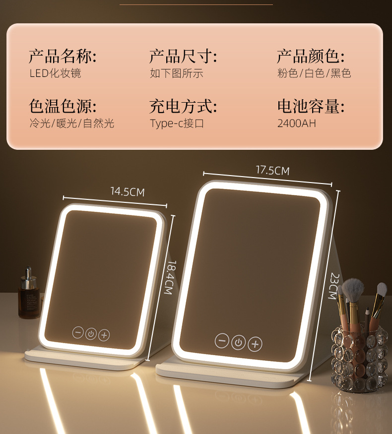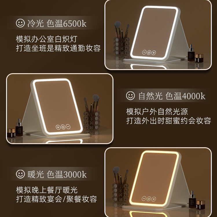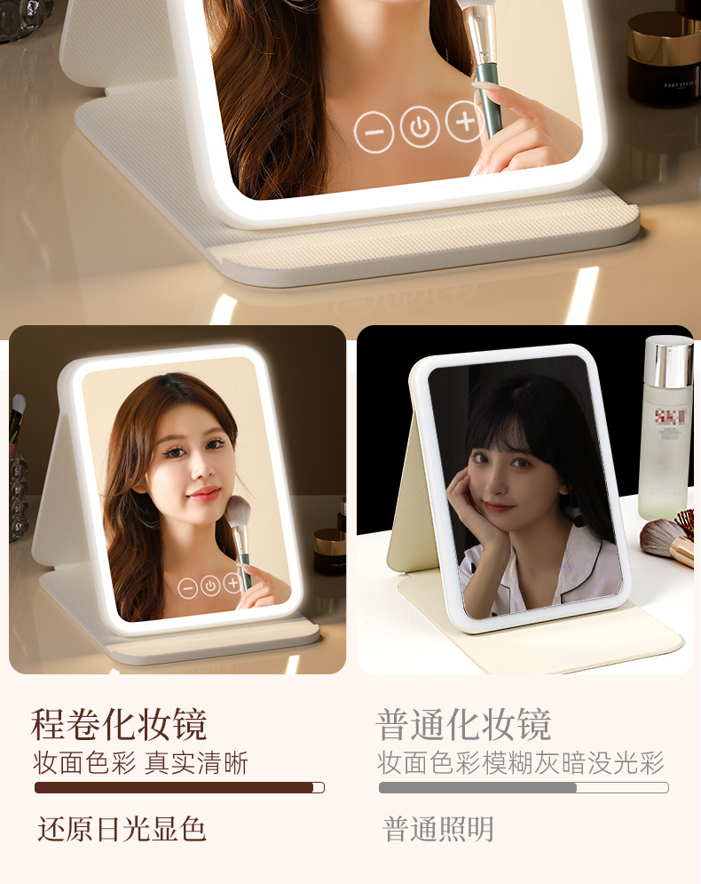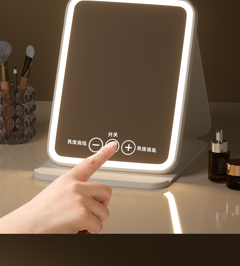 Косметическое зеркало со светодиодной подсветкой, портативное складное настольное настольное зеркало для студенческого общежития, домашнее зеркало, умное косметическое зеркало