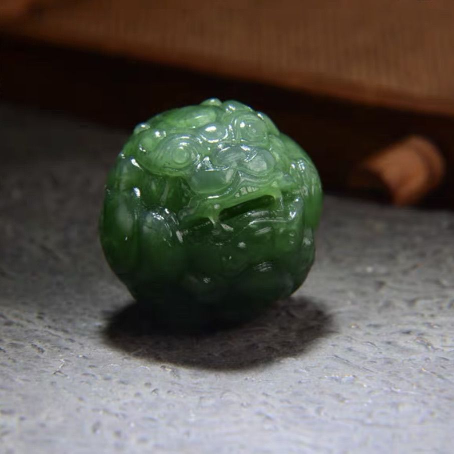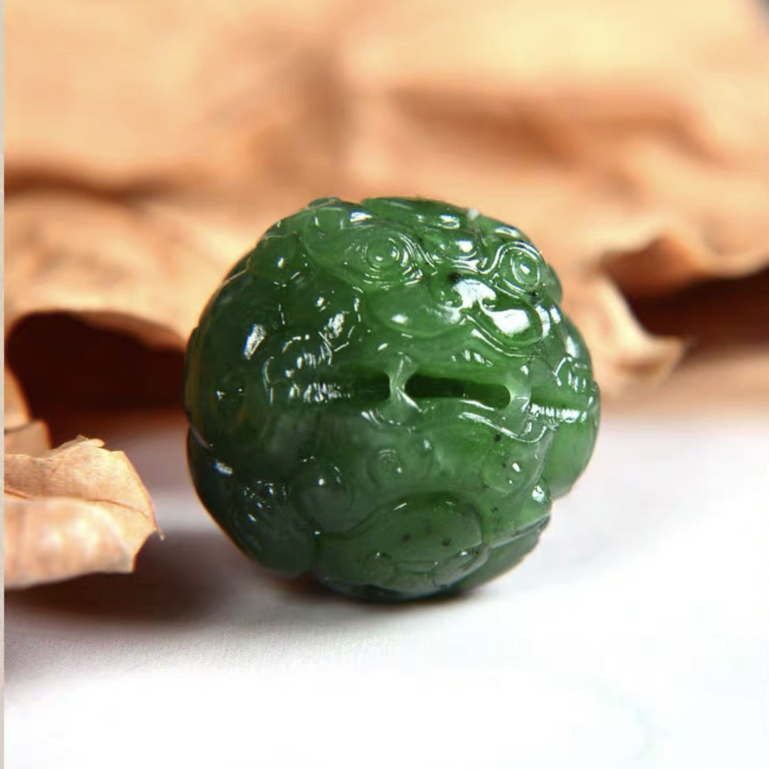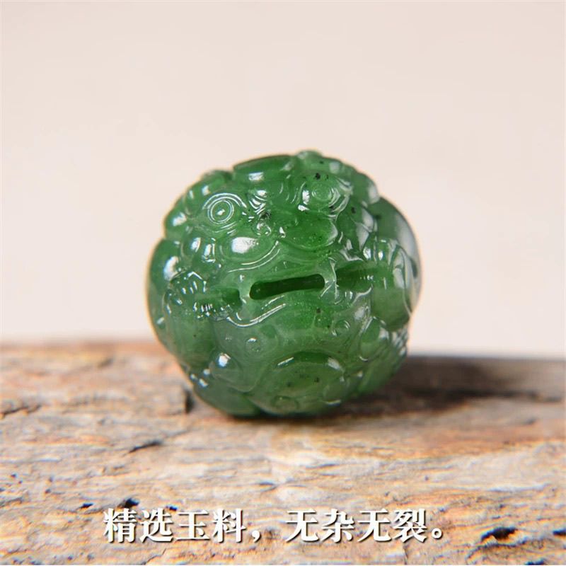 Свободный круглый браслет Pixiu из натурального нефрита Хэтянь с бусинами и подвеской из жадеита цвета шпината.