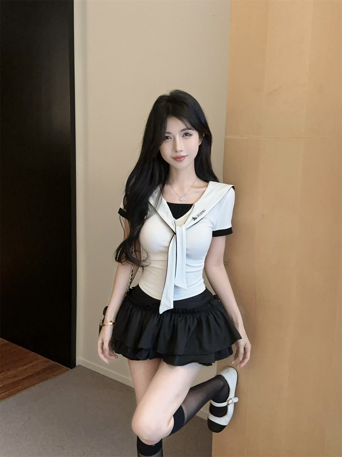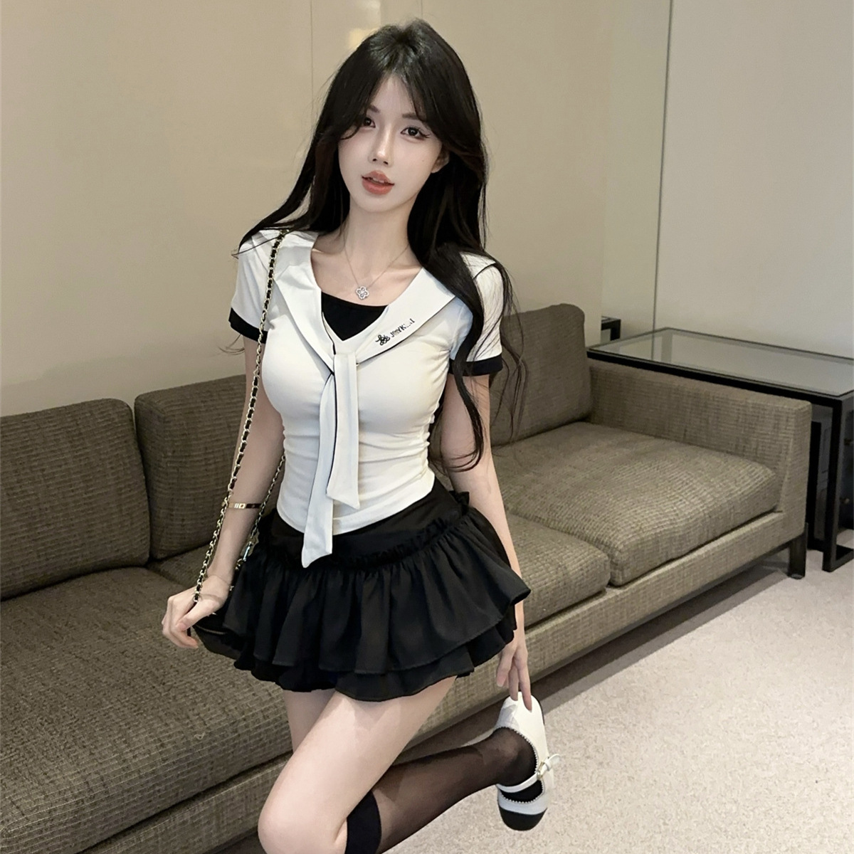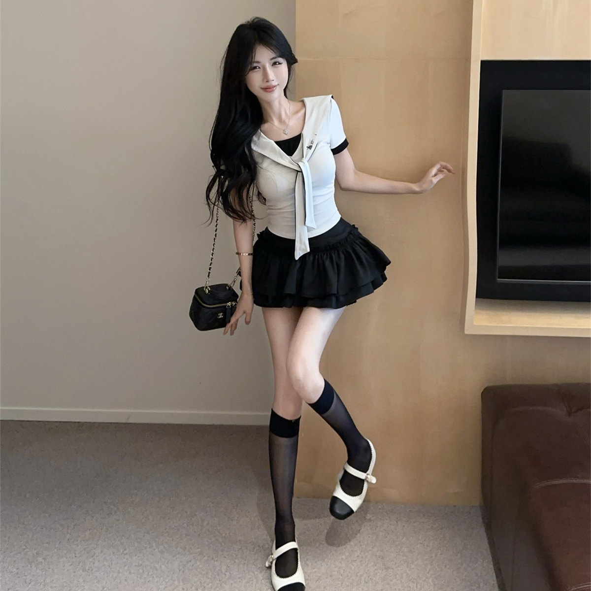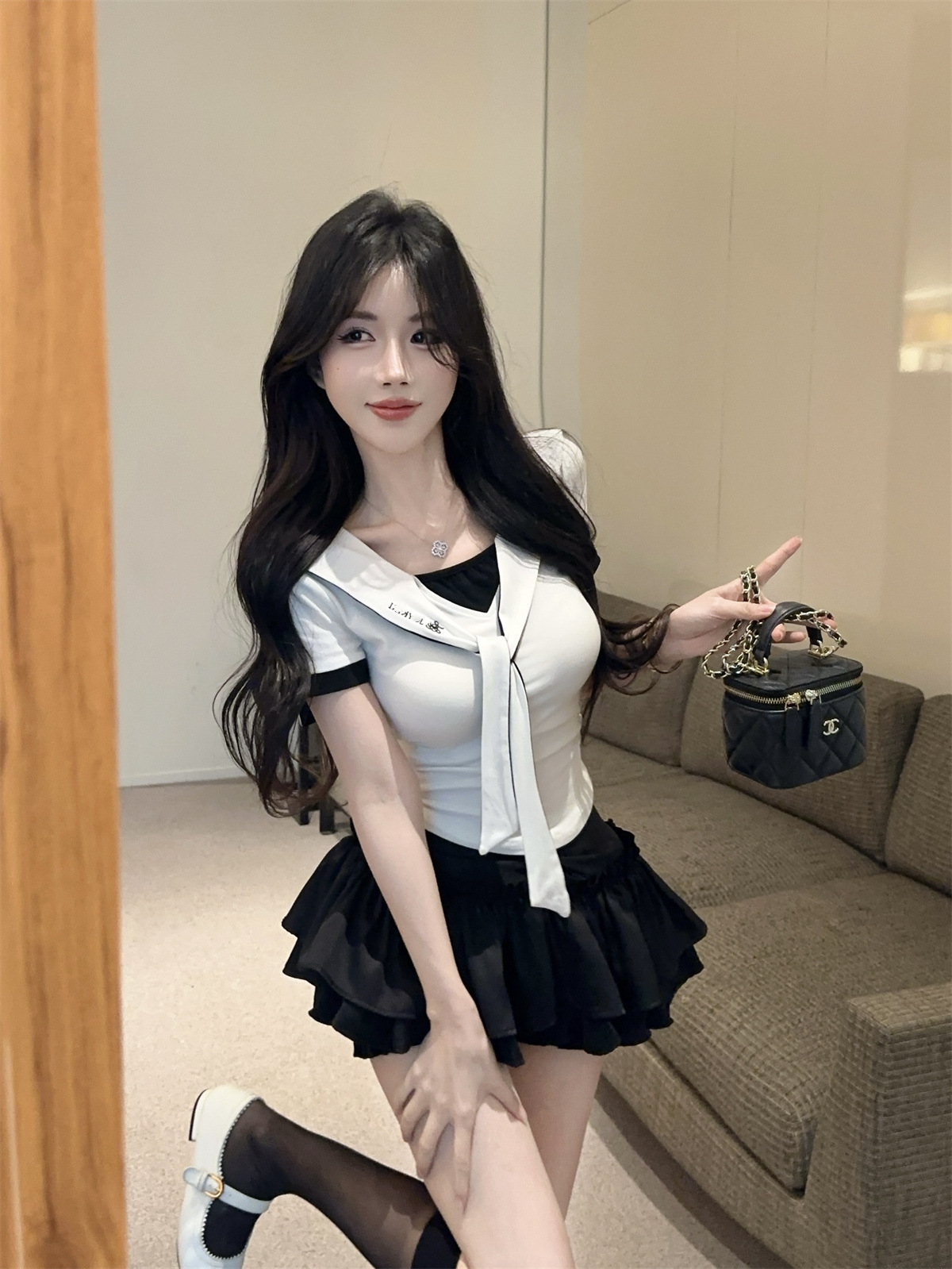 Модная и чистая униформа JK в студенческом стиле, комплект из двух частей, уменьшающий возраст, топ с короткими рукавами и пышной юбкой с высокой талией.