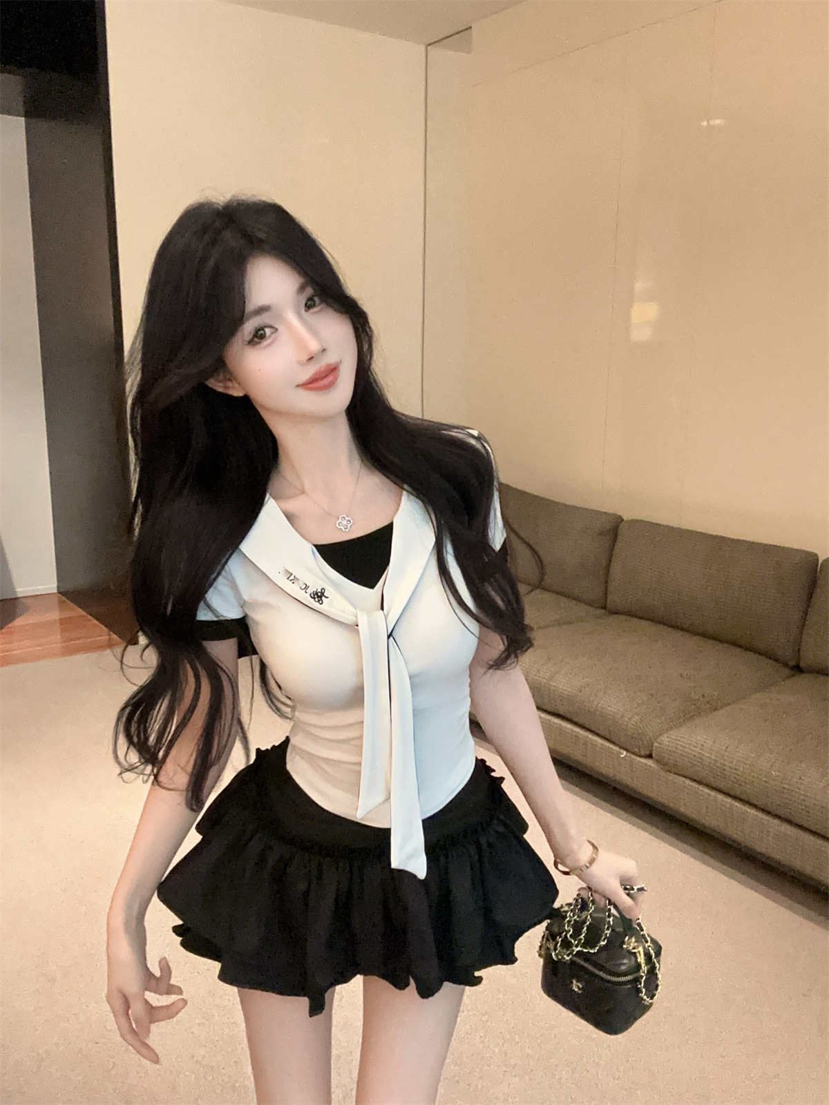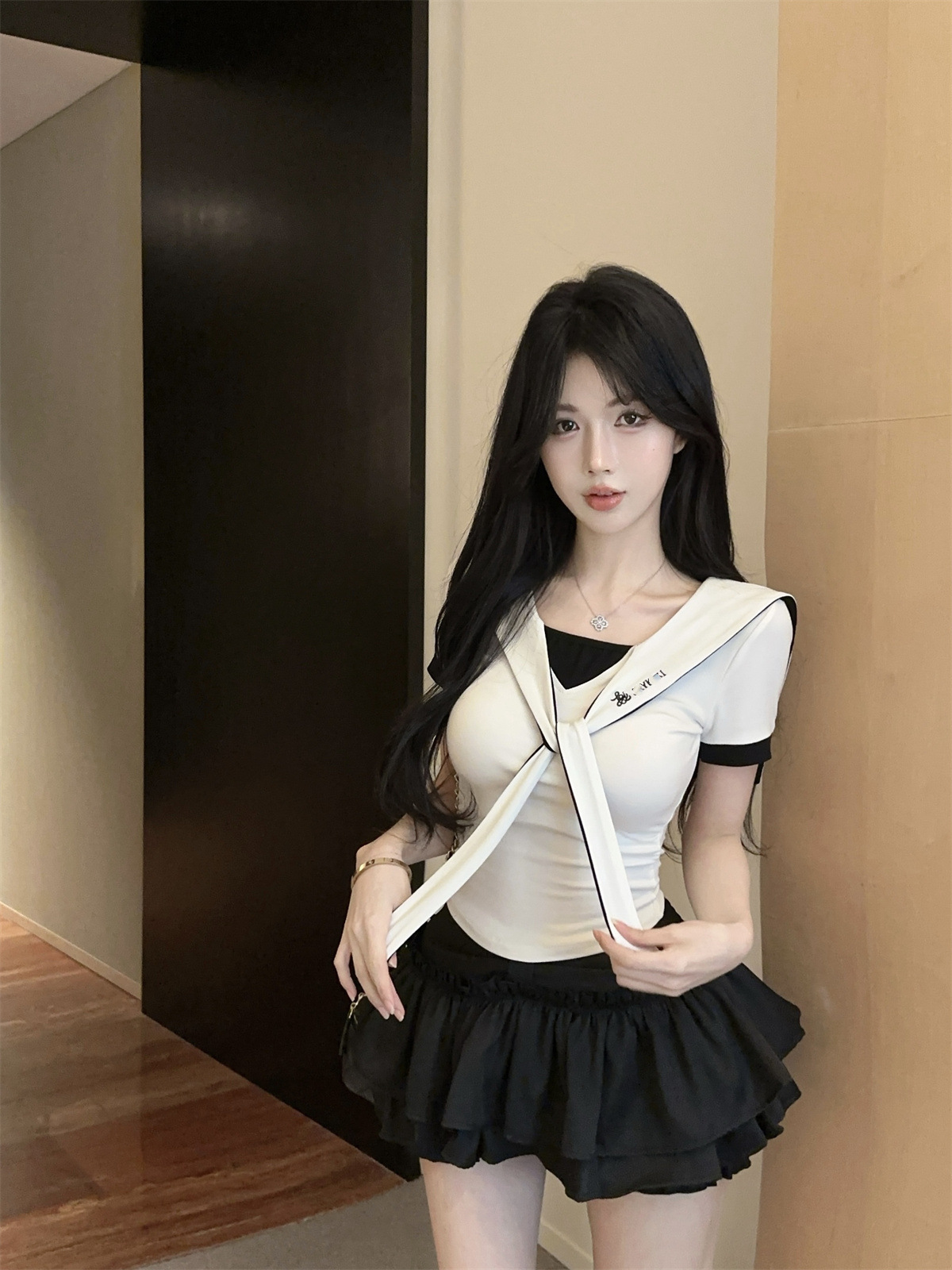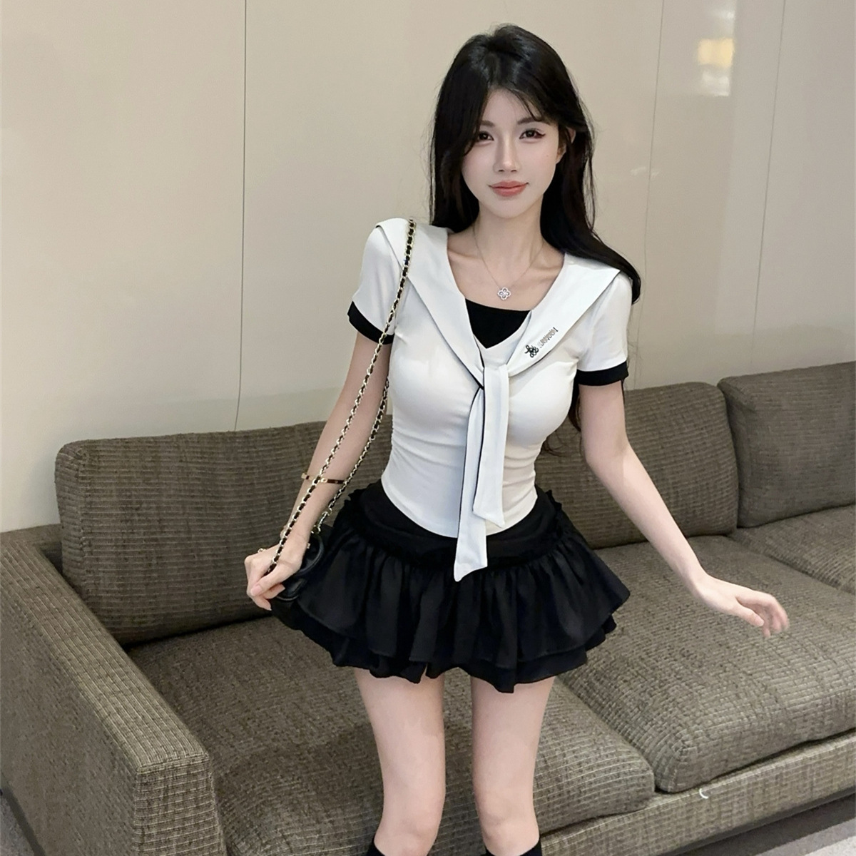 Модная и чистая униформа JK в студенческом стиле, комплект из двух частей, уменьшающий возраст, топ с короткими рукавами и пышной юбкой с высокой талией.