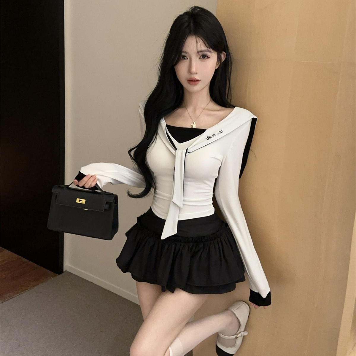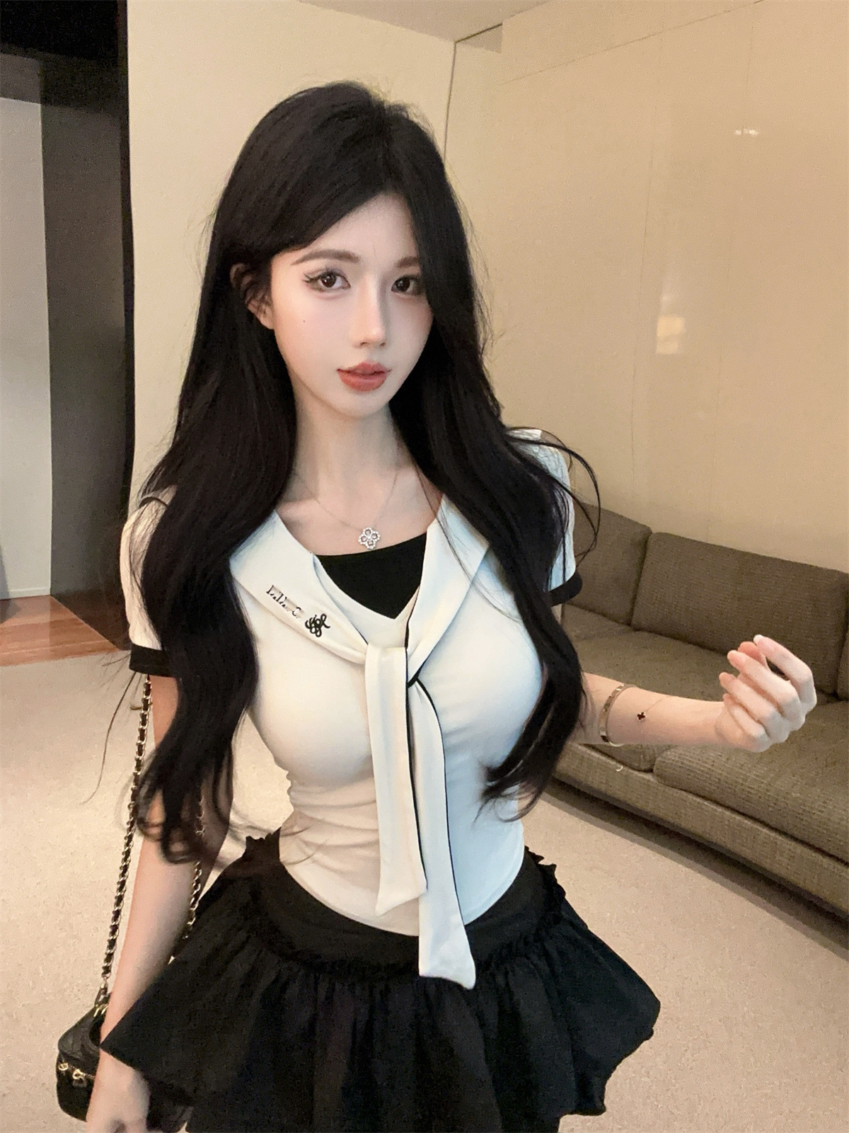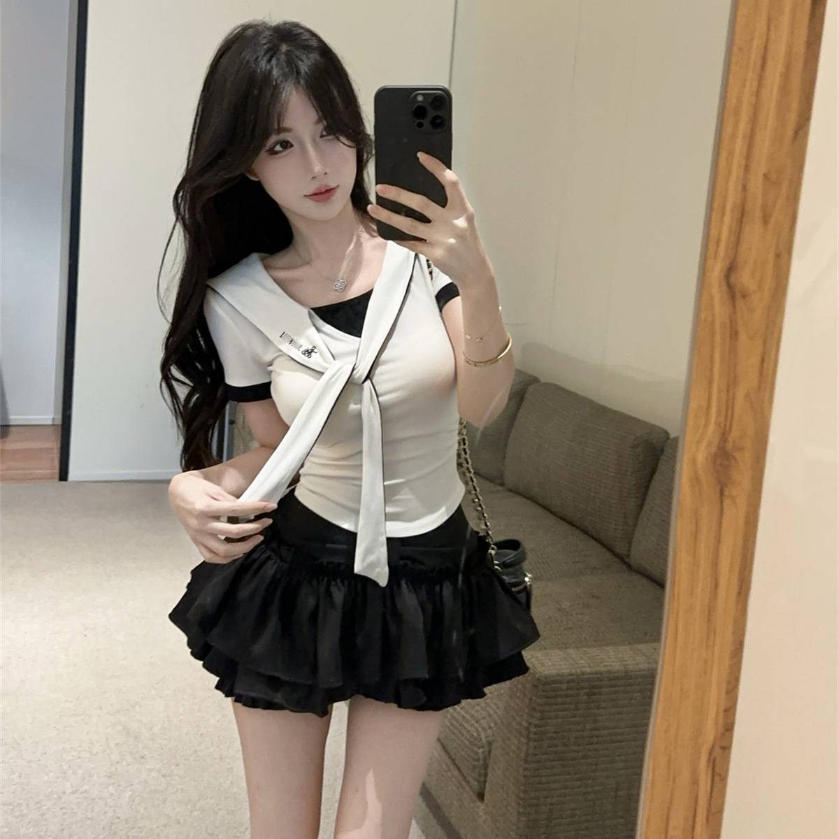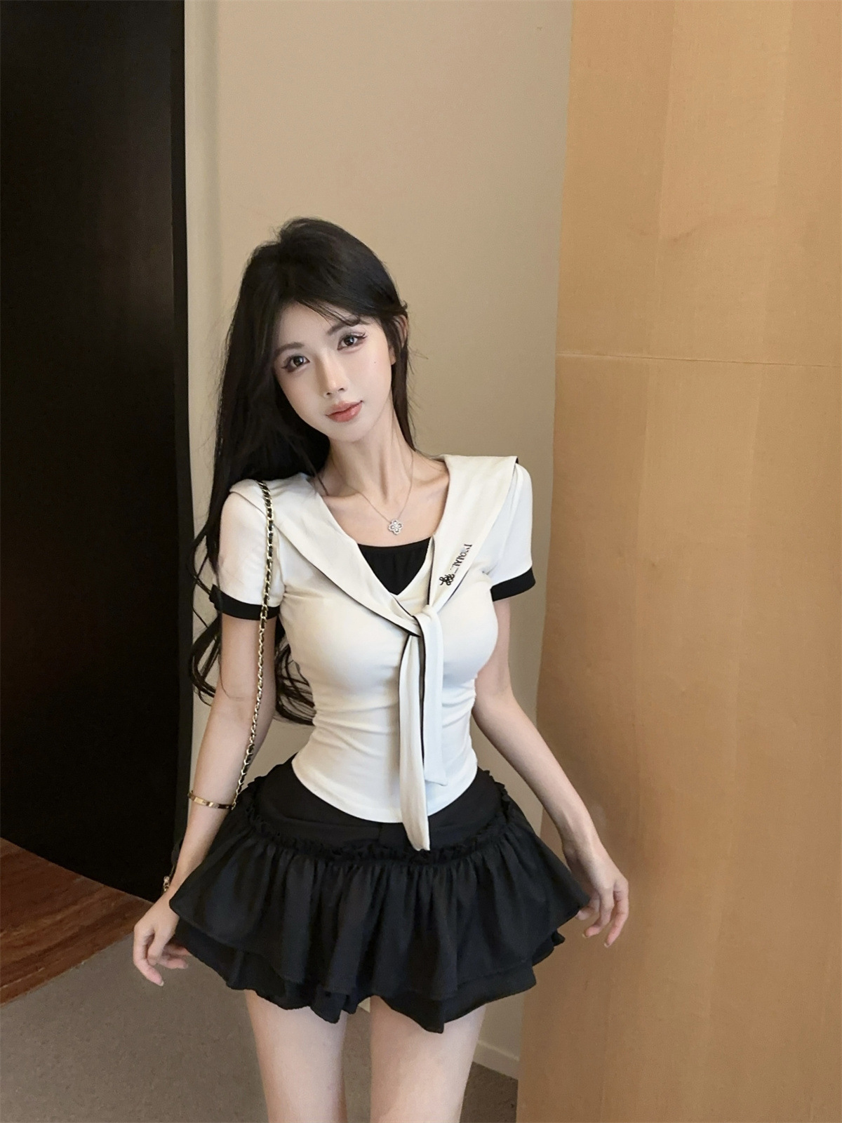 Модная и чистая униформа JK в студенческом стиле, комплект из двух частей, уменьшающий возраст, топ с короткими рукавами и пышной юбкой с высокой талией.