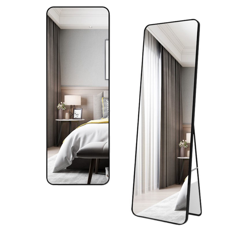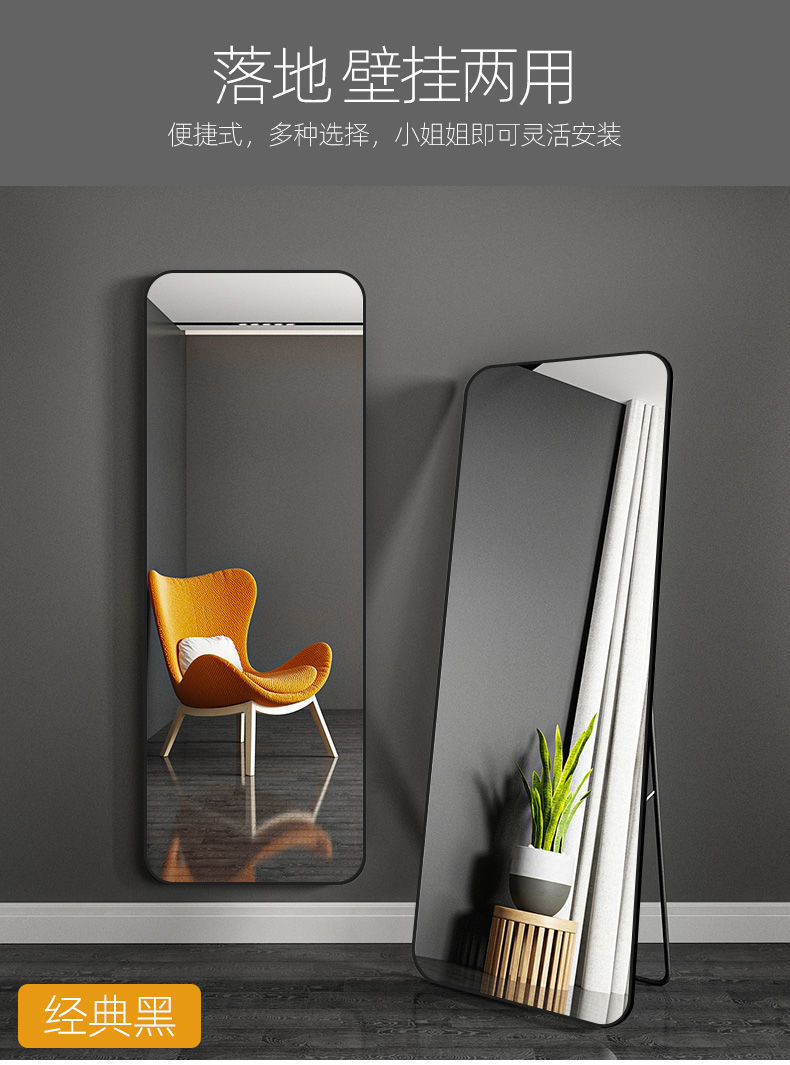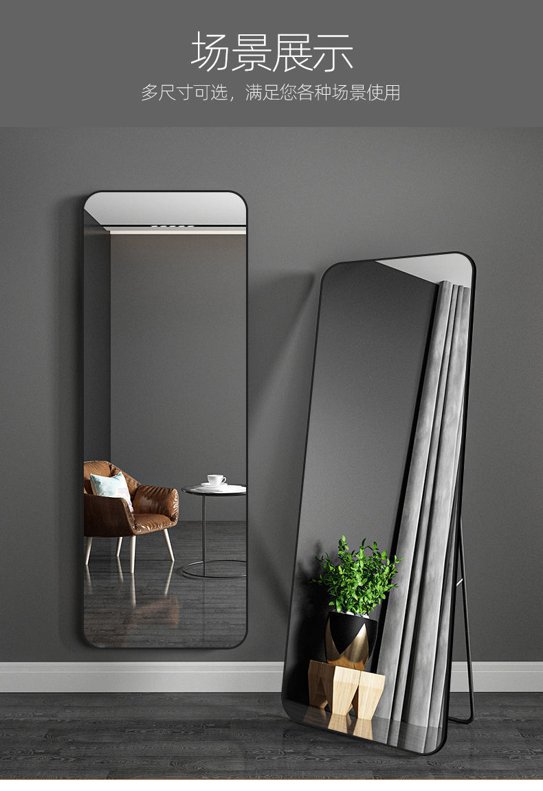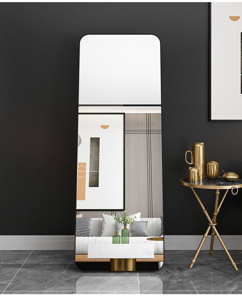 Модное минималистичное напольное зеркало в полный рост с закругленными углами для домашнего использования, подходящее зеркало, горизонтальное зеркало для гардероба для студенческого общежития или магазина одежды.
