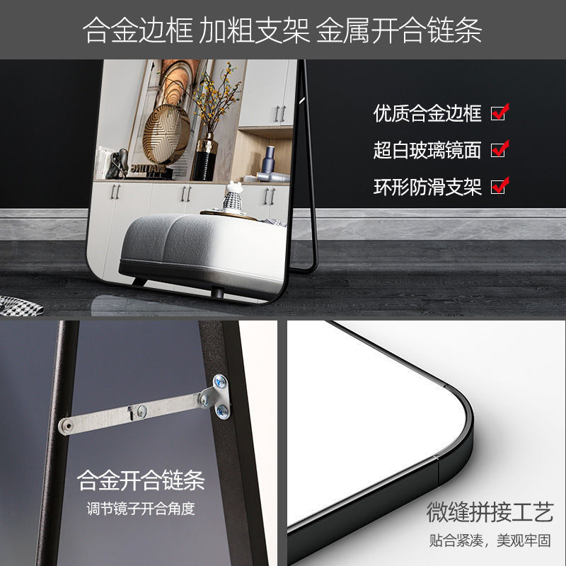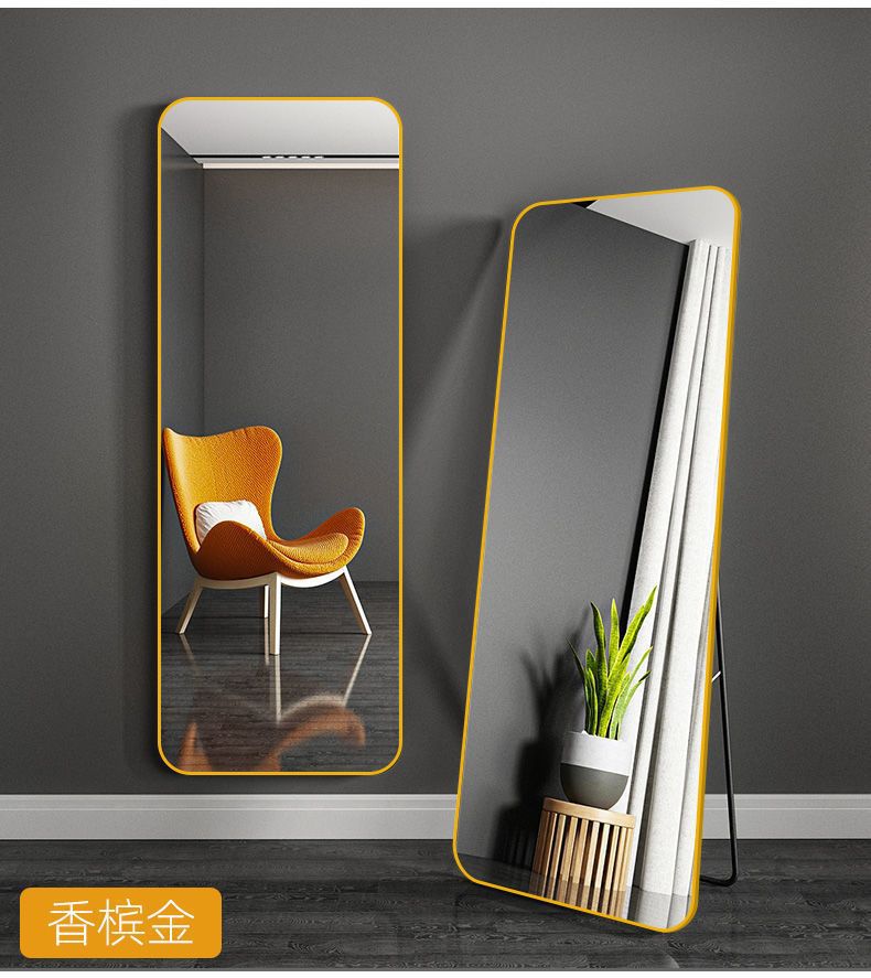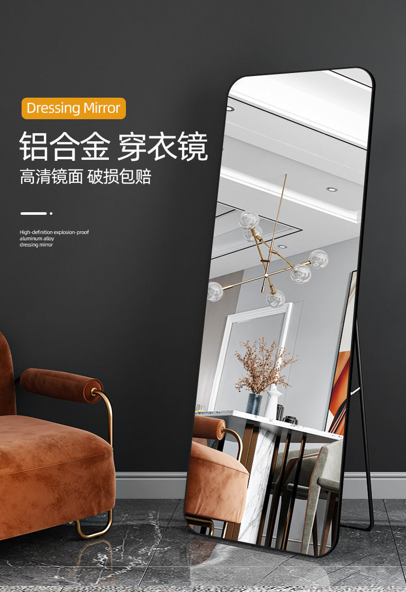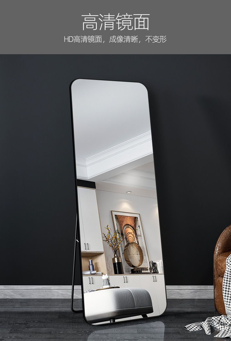 Модное минималистичное напольное зеркало в полный рост с закругленными углами для домашнего использования, подходящее зеркало, горизонтальное зеркало для гардероба для студенческого общежития или магазина одежды.