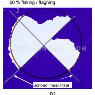 areas of the test specimen. Even the smallest areas of flaking are measured and calculated, and all areas added to