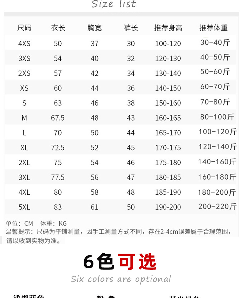 4XS (рост 100-120 см); 3XS (рост 120-130см); 2XS (рост 130-140 см); XS (рост 140-150 см); С (рост 150-160см); М (рост 160-165см); Л (рост 165-170см); XL (рост 170-175см); 2XL (рост 175-180 см); 3XL (рост 180-185 см); 4XL (рост 185-190 см); 5XL (рост 190-200 см)