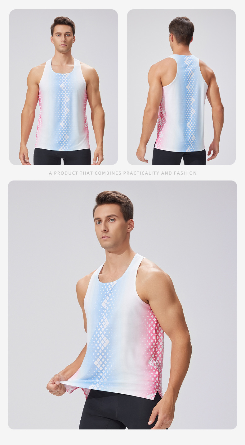 Новый летний мужской жилет без рукавов с принтом для фитнеса и бега, трансграничный внутренний продажи, дышащий легкий быстросохнущий спортивный жилет